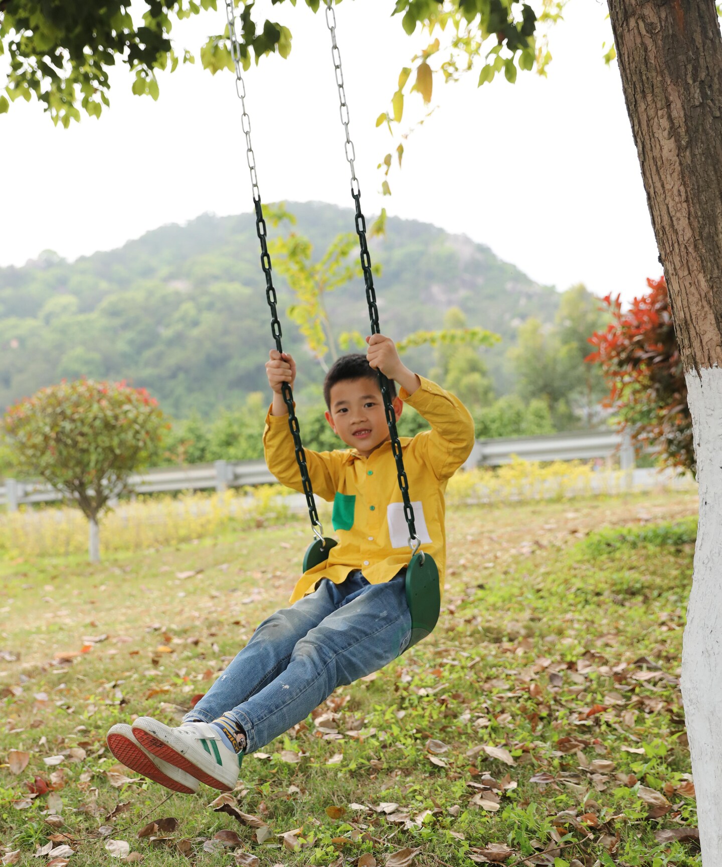Heavy Duty Flexible Green Belt Swing with Coated Metal Chain