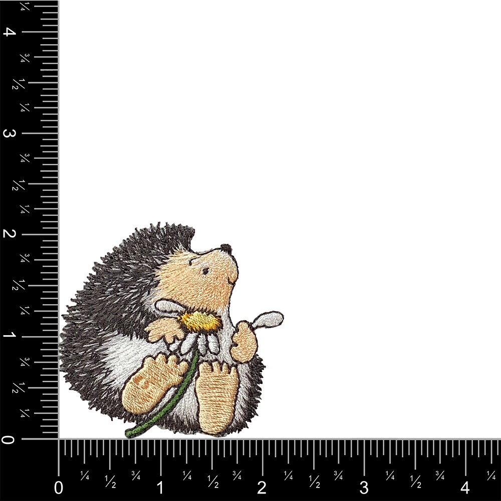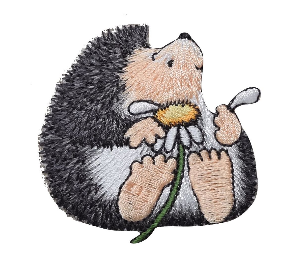 Hedgehog with Daisy Flower, Embroidered, Iron on Patch