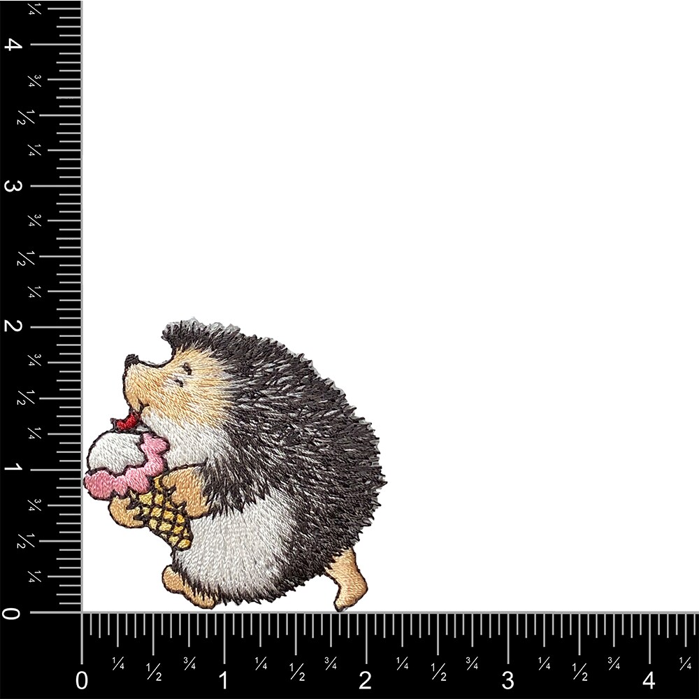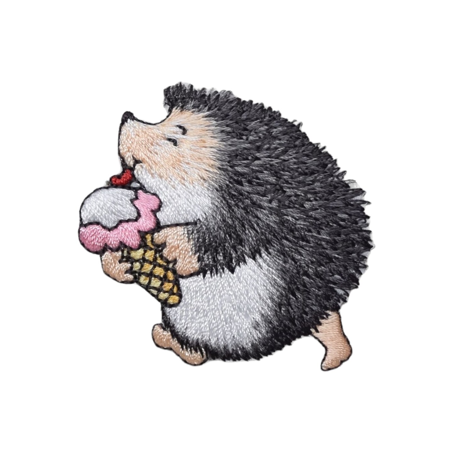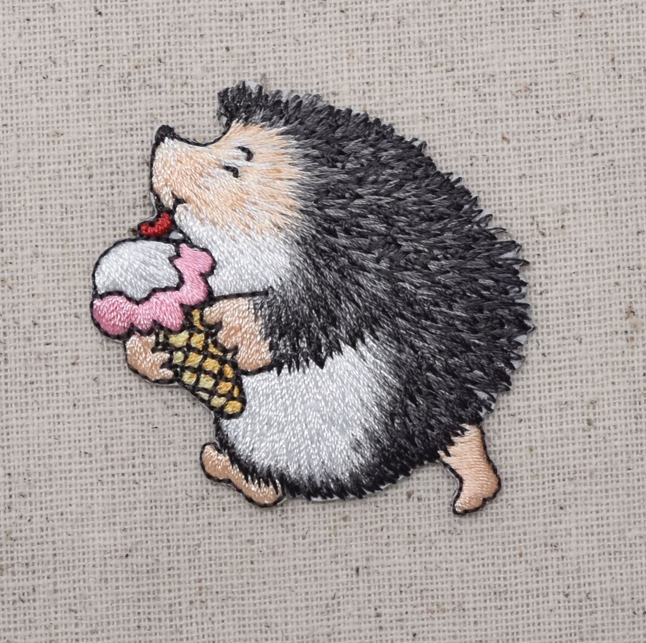 Hedgehog with Ice Cream Cone, Embroidered, Iron on Patch