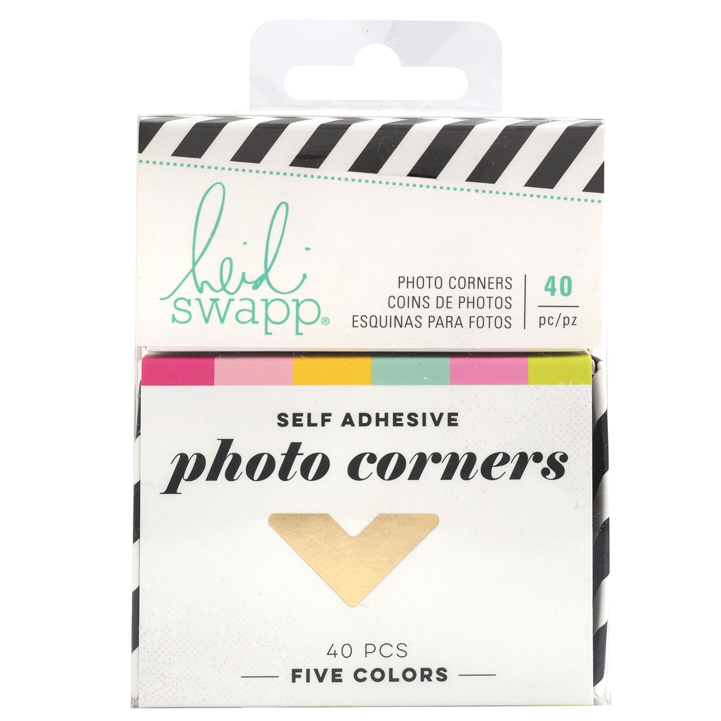 Heidi Swapp Color Fresh Photo Corners 40/Pkg-W/Gold Foil