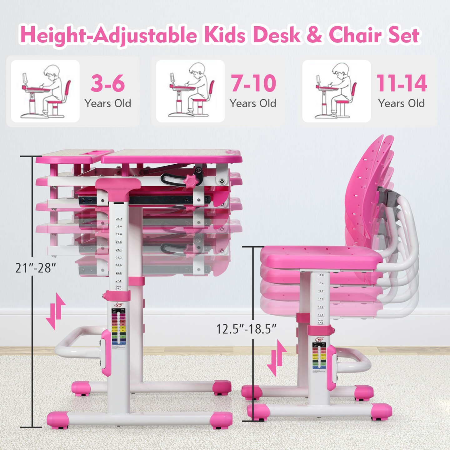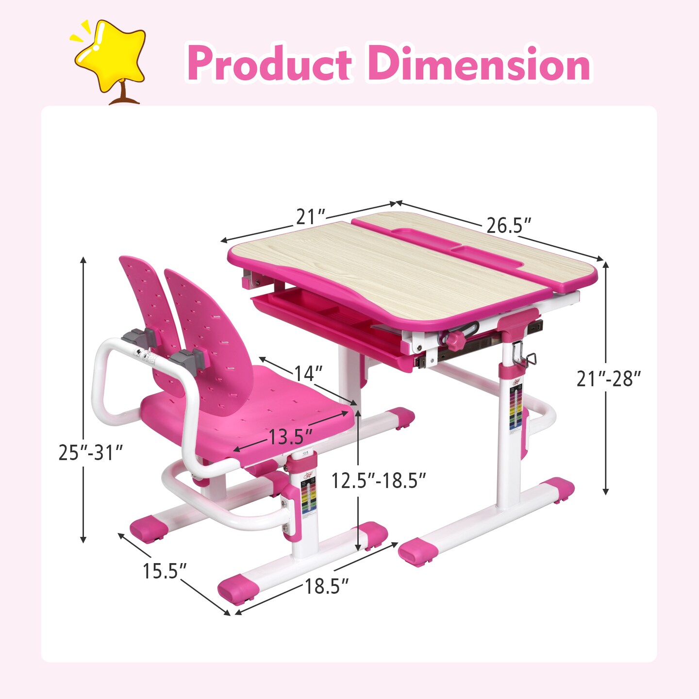 Height Adjustable Kids Study Desk and Chair Set