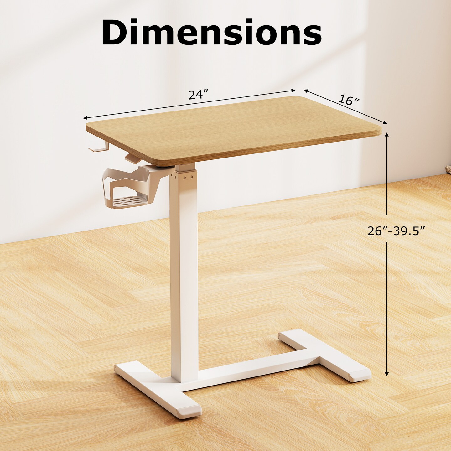 Height Adjustable Mobile Overbed Table with Cup Holder Standing and Bedside Use
