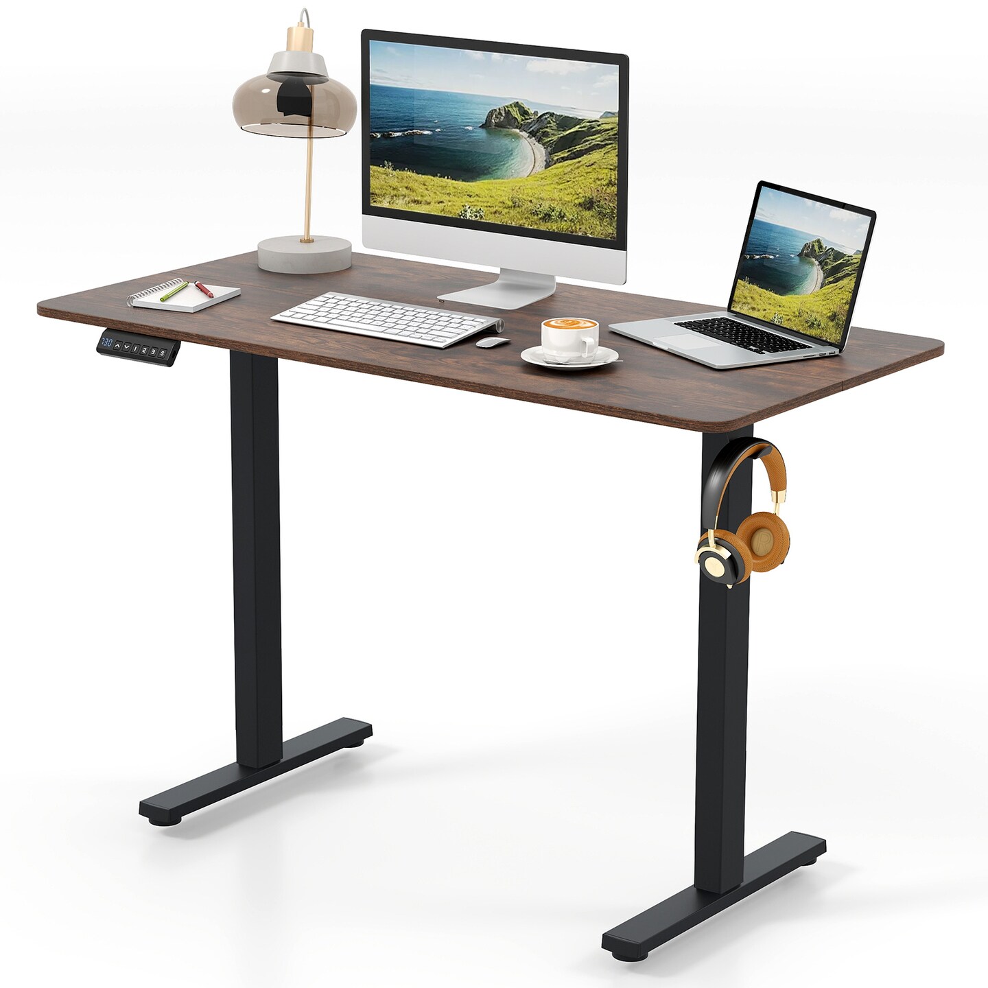 Height Adjustable Sit Stand Desk with Headphone Hook and Ties