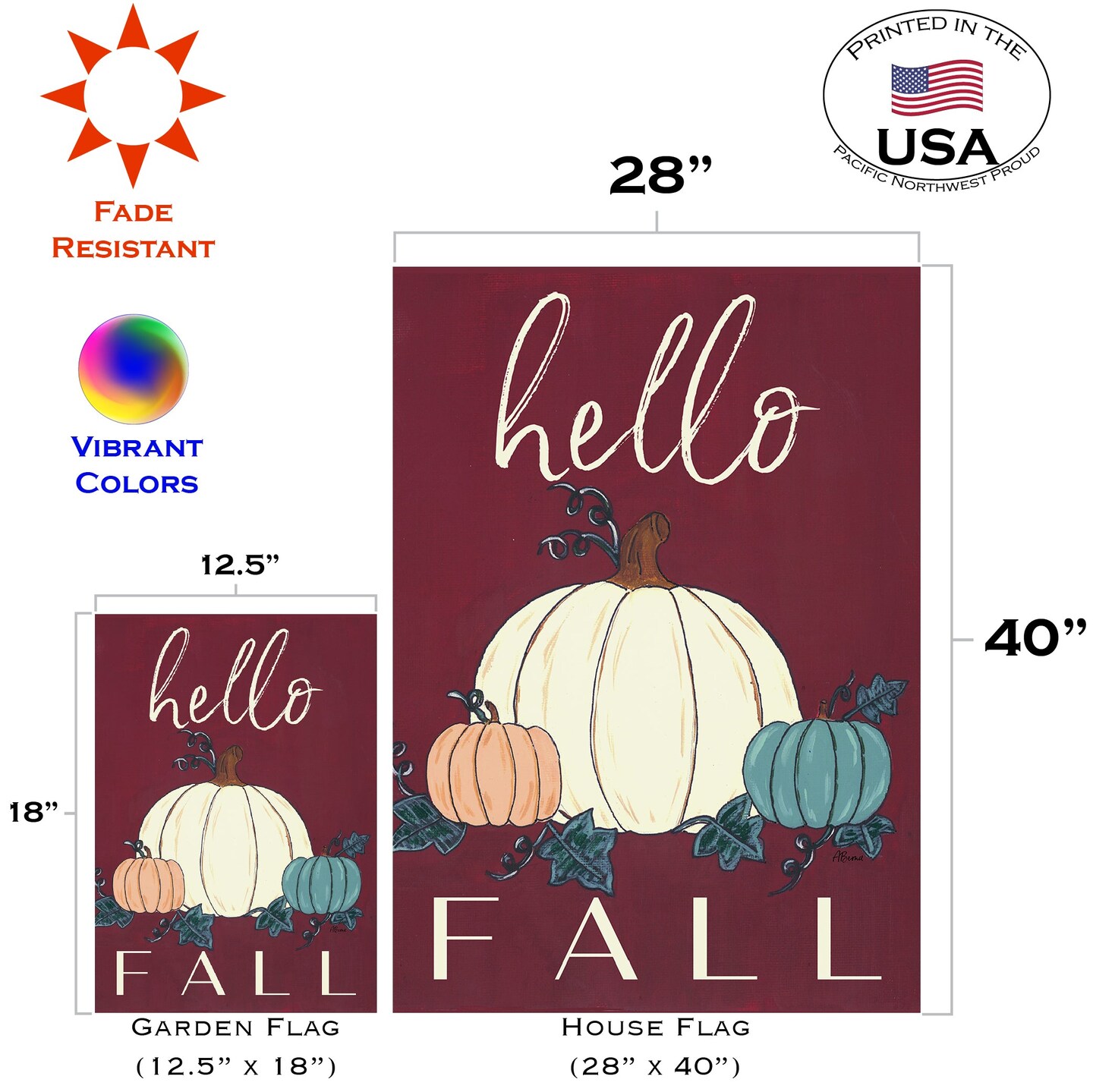 Hello Fall Gourds Decorative Fall Double Sided Flag