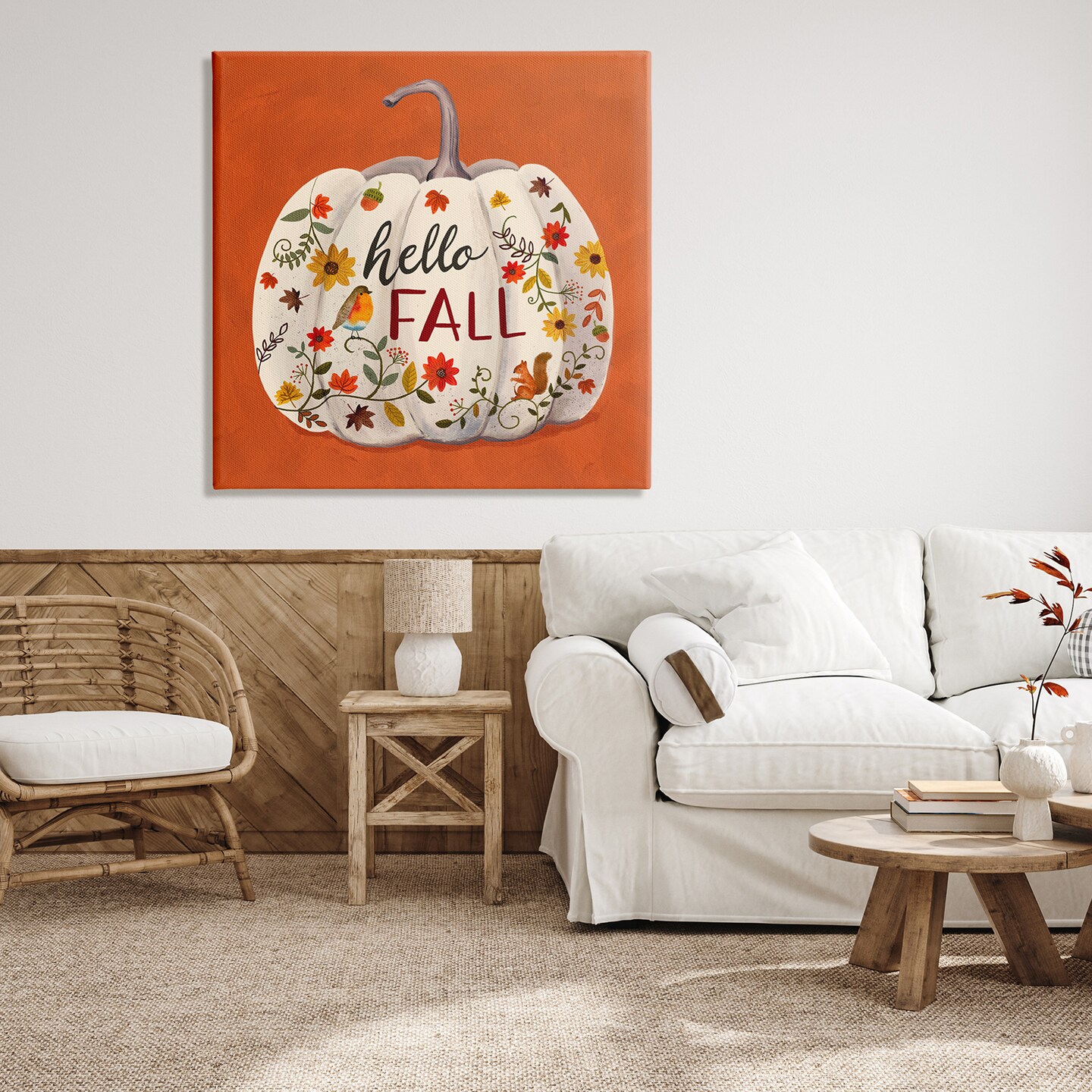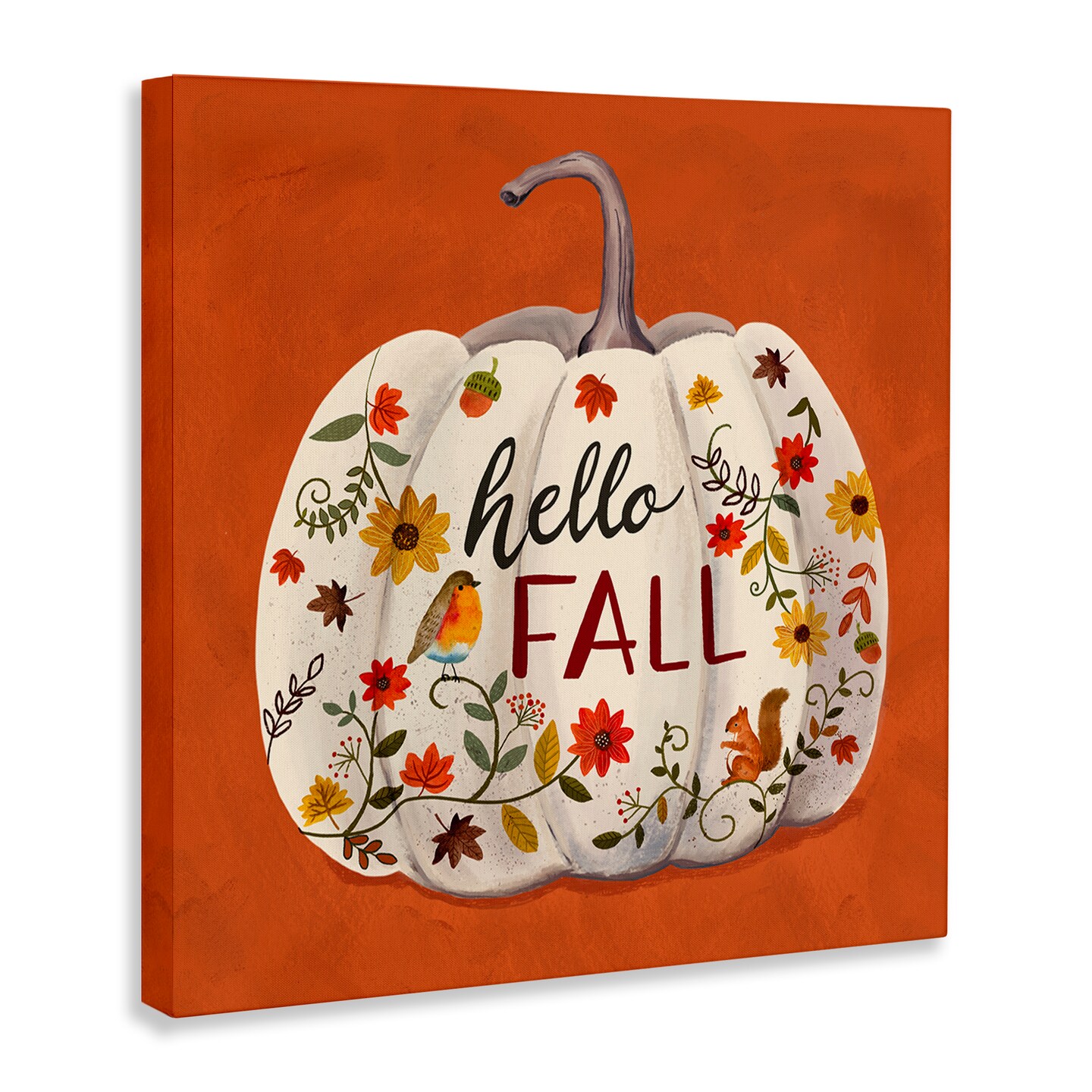 Hello Fall Patterned White Pumpkin Floral Botanicals Canvas Art