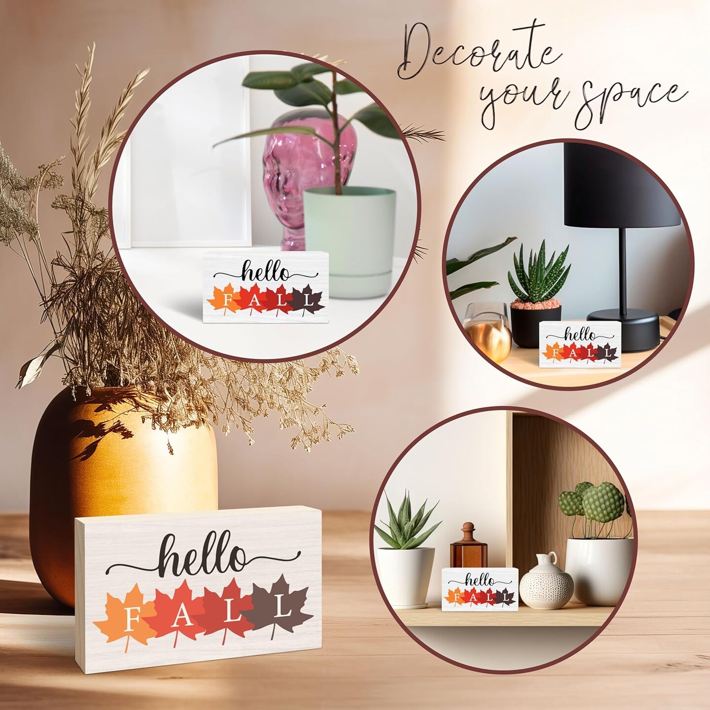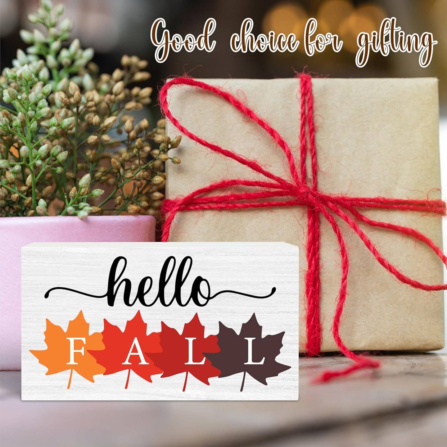 Hello Fall Wooden Block Sign Tabletop Decor - 3"X5"inch