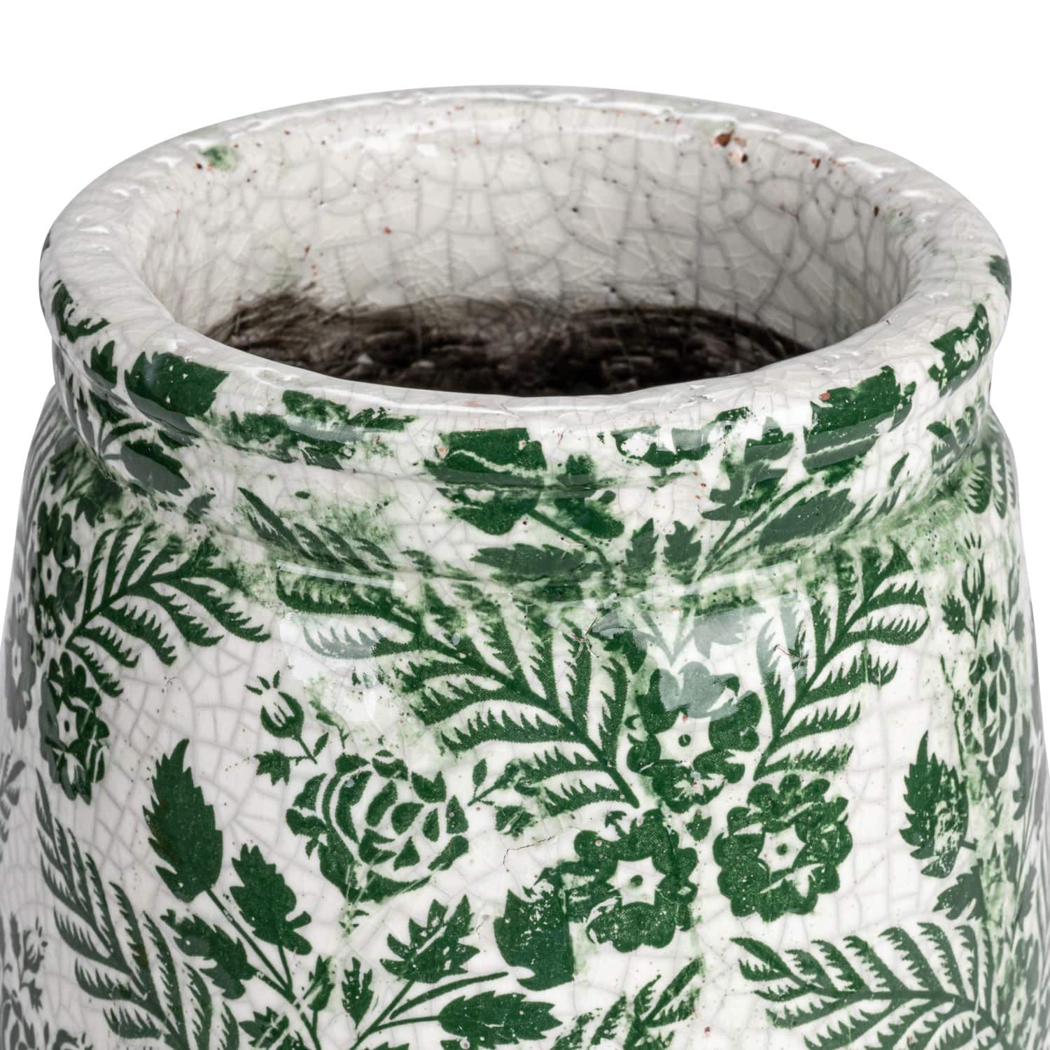 Hello Honey® 10.75" Green & White Flower Patterned Terra Cotta Planter Vase with Crackle Glaze