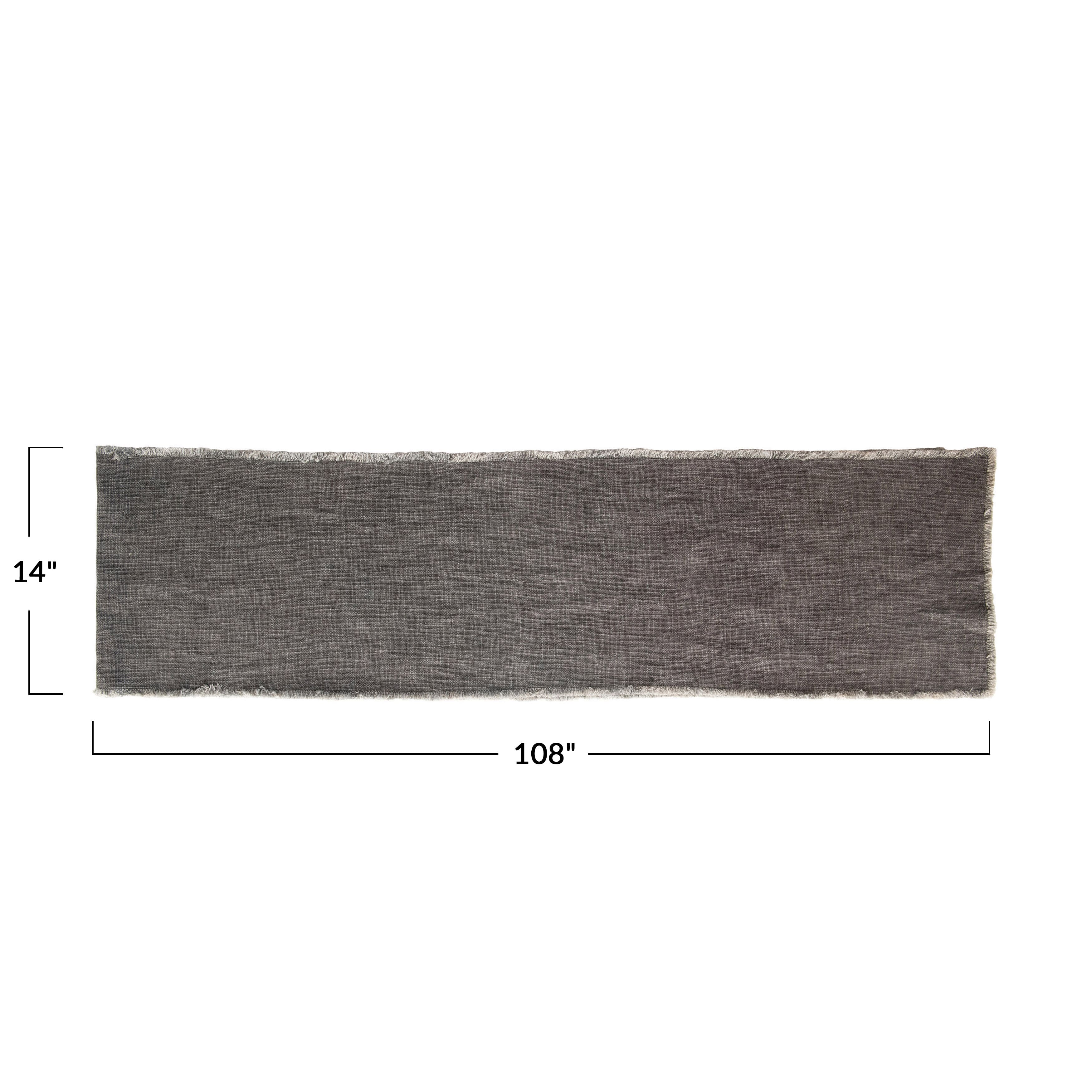 Hello Honey® 108" Gray Linen-Blend Table Runner with Frayed Edges