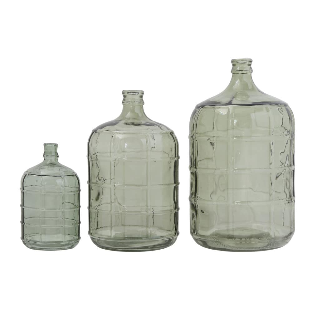 Hello Honey® 11" Transparent Green Vintage Embossed Windowpane Glass Bottle