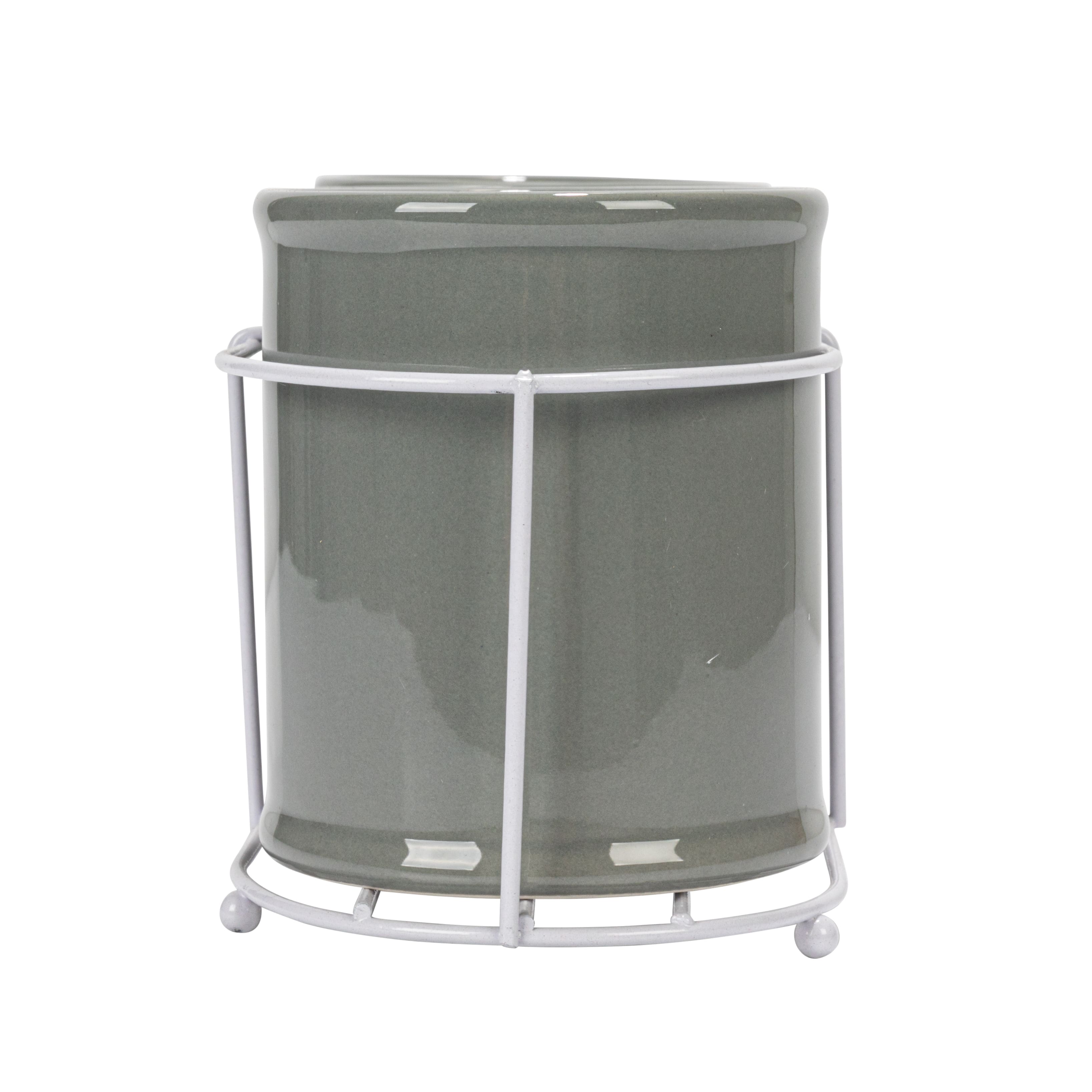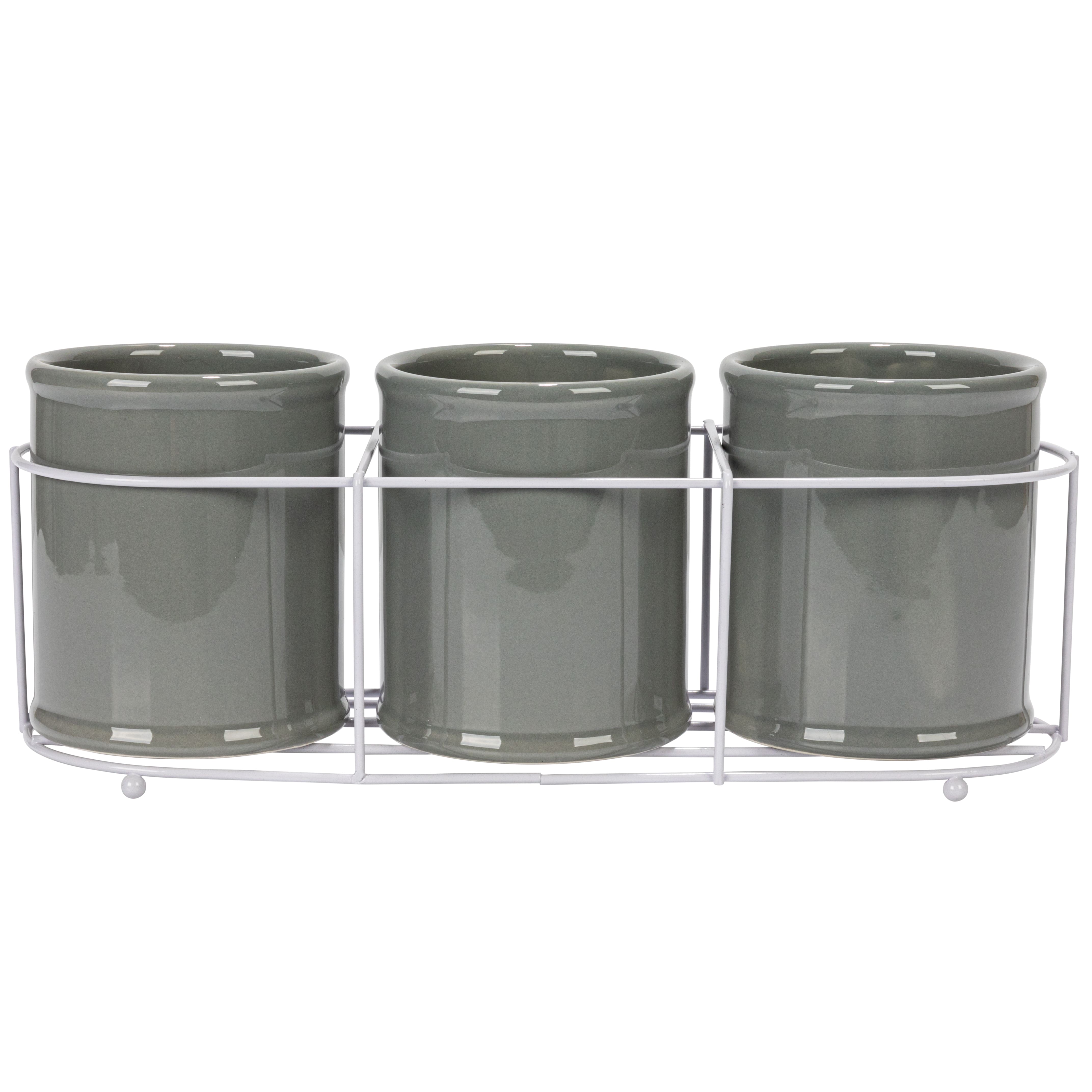Hello Honey® 11.5" Gray Farmhouse Ceramic Crocks in White Metal Holder