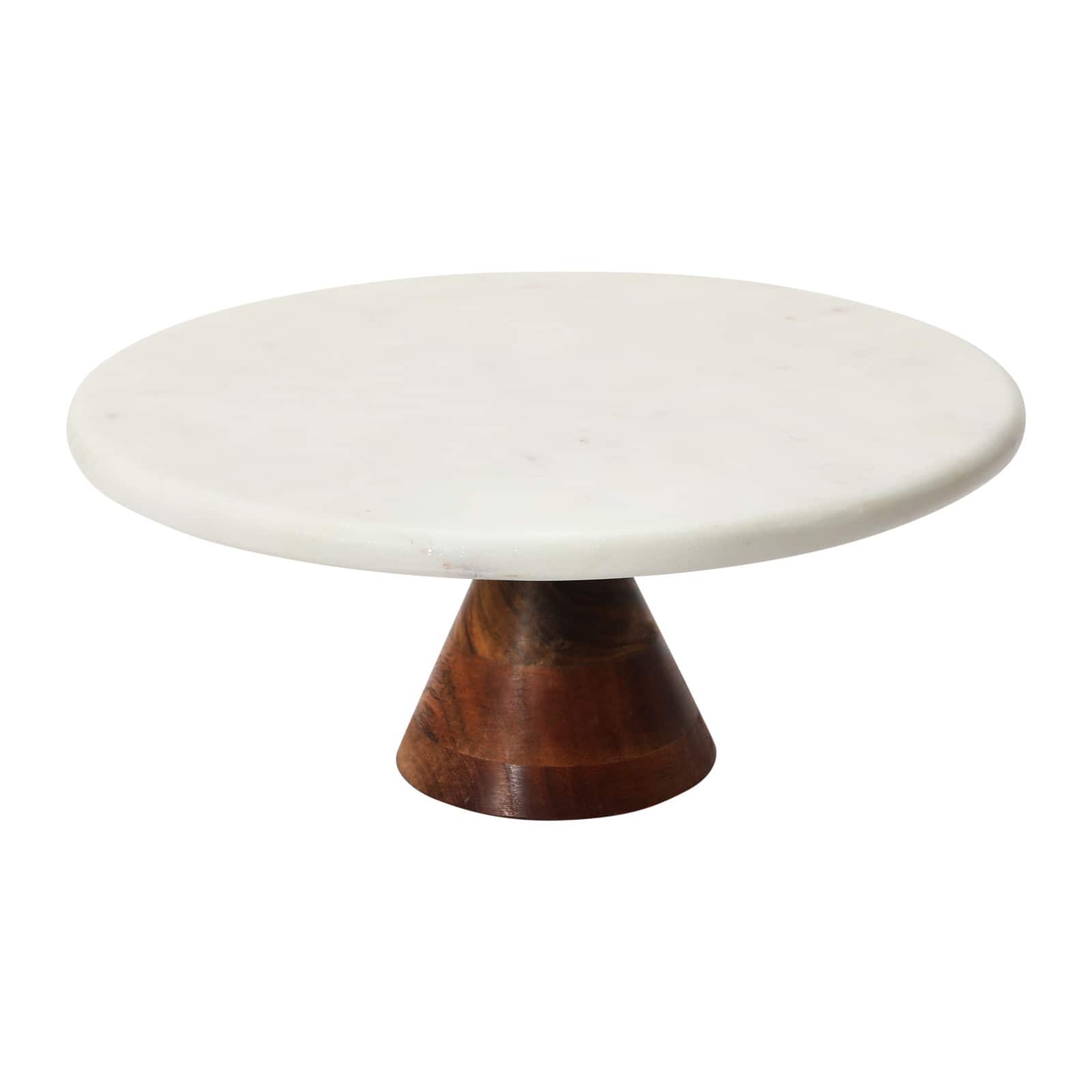Hello Honey® 12" Marble Pedestal with Wood Base Stand