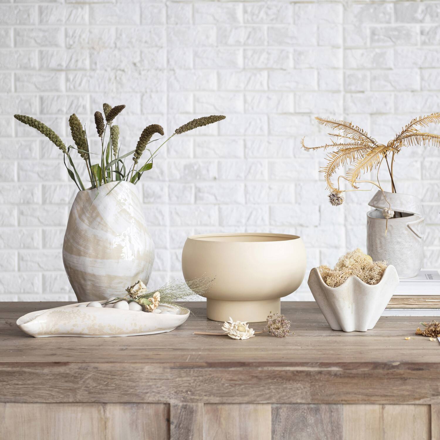 Hello Honey® 12.25" Cream & Gold with Reactive Glaze Hand Painted Stoneware Vase