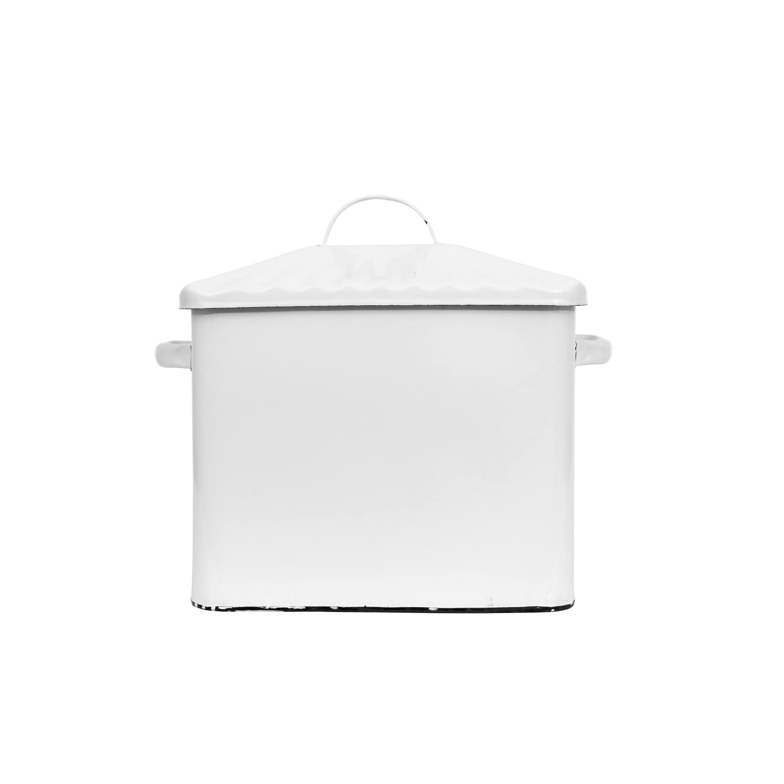Hello Honey® 13.5" Enameled Metal Distressed White Bread Box with Lid
