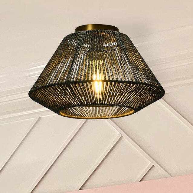 Hello Honey® 14" Gray Flush Mount Ceiling Light with Woven Paper Rope Shade