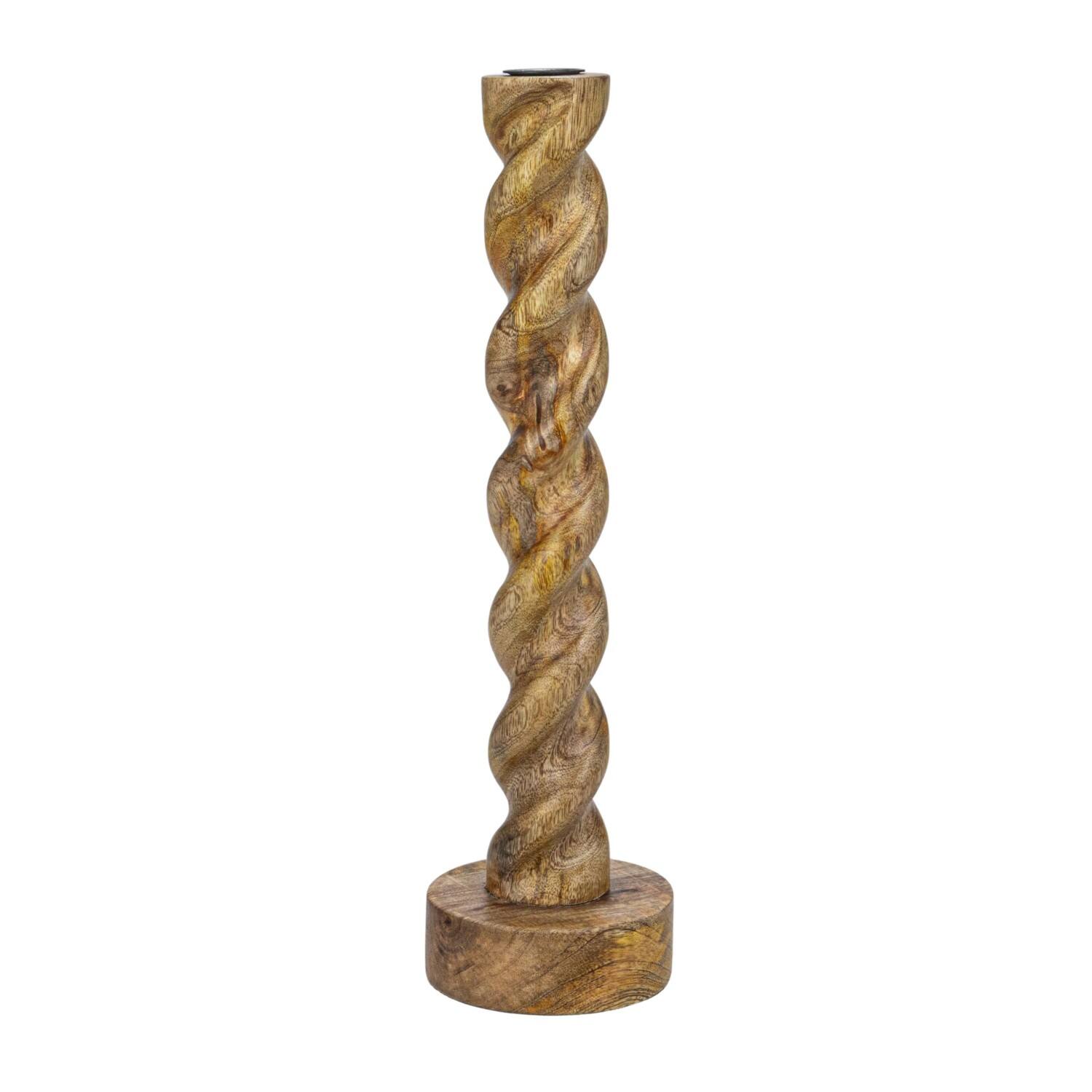 Hello Honey® 14" Tall Natural Hand-Carved Mango Wood Twisted Taper Candle Holder
