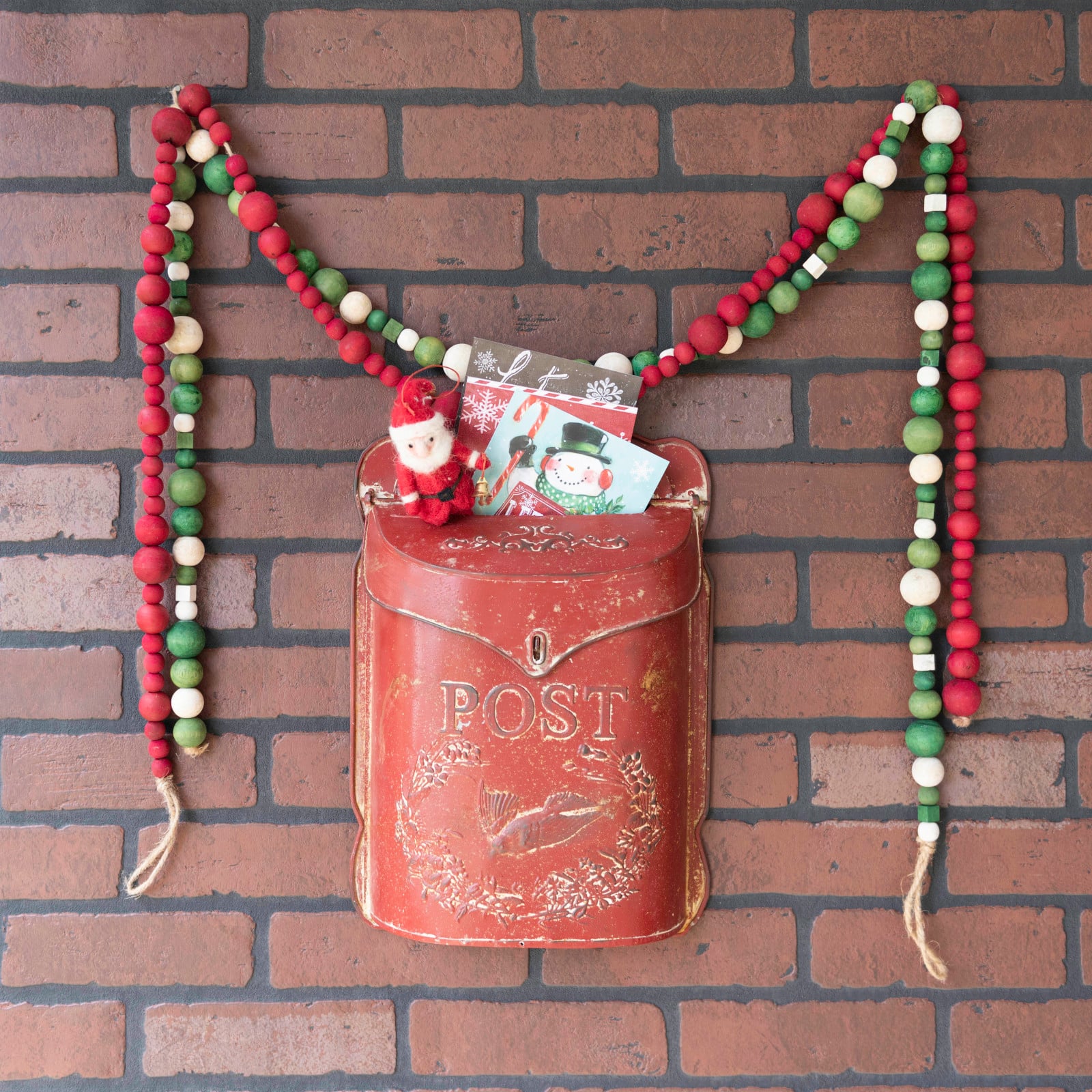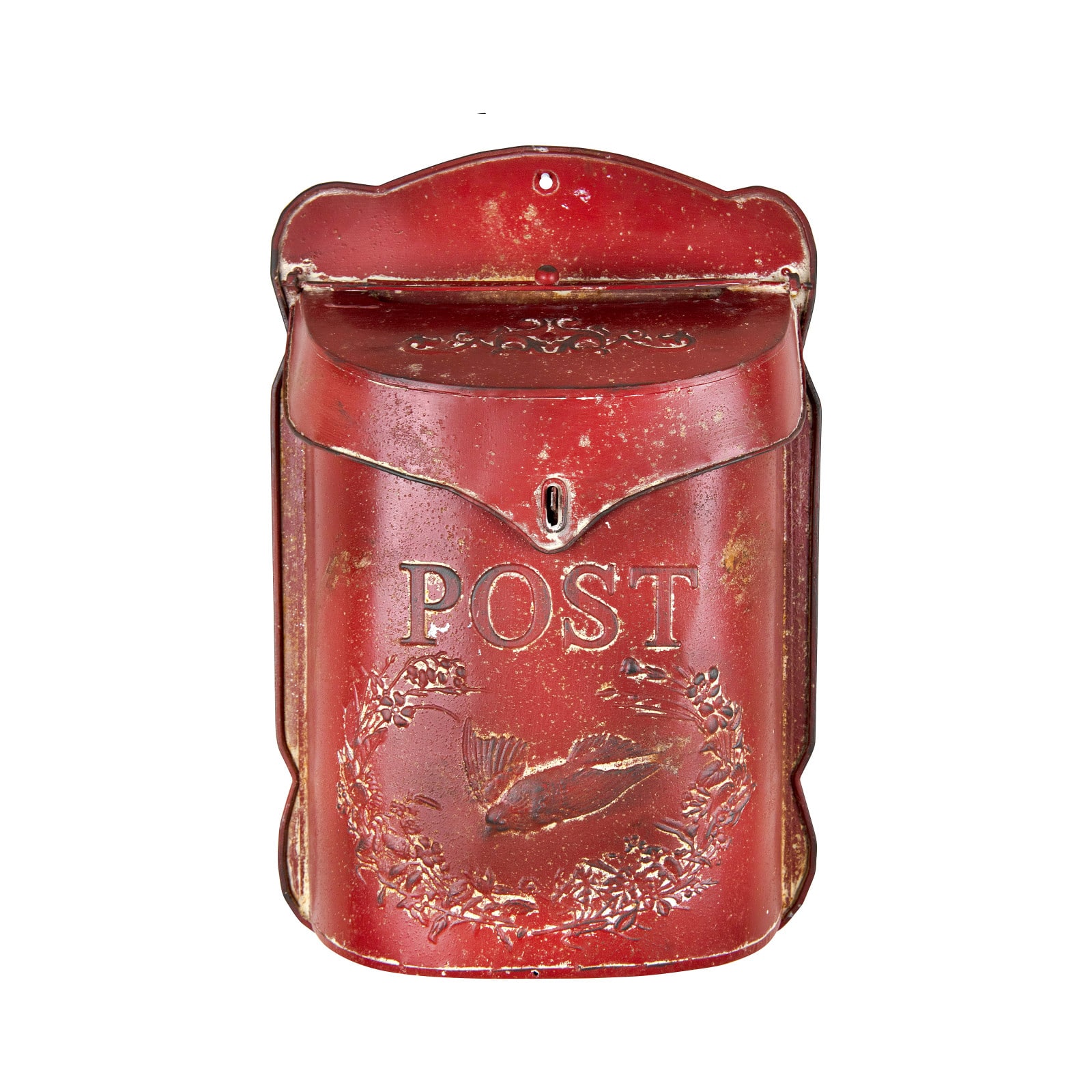 Hello Honey® 15.5" Red Embossed Tin Post Letter Box with Distressed Finish Wall Décor