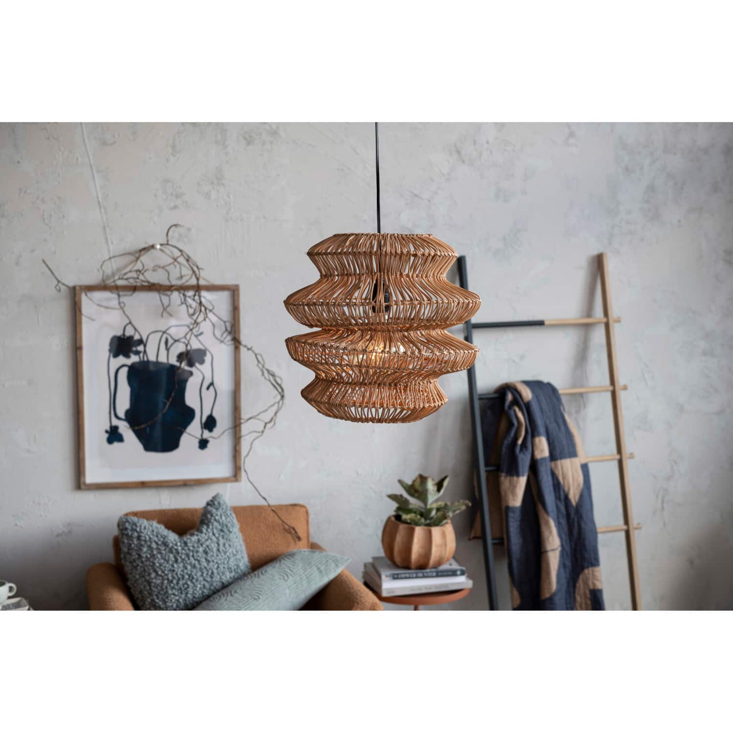 Hello Honey® 16" Boho Natural Woven Rattan Sculptural Pendant Light