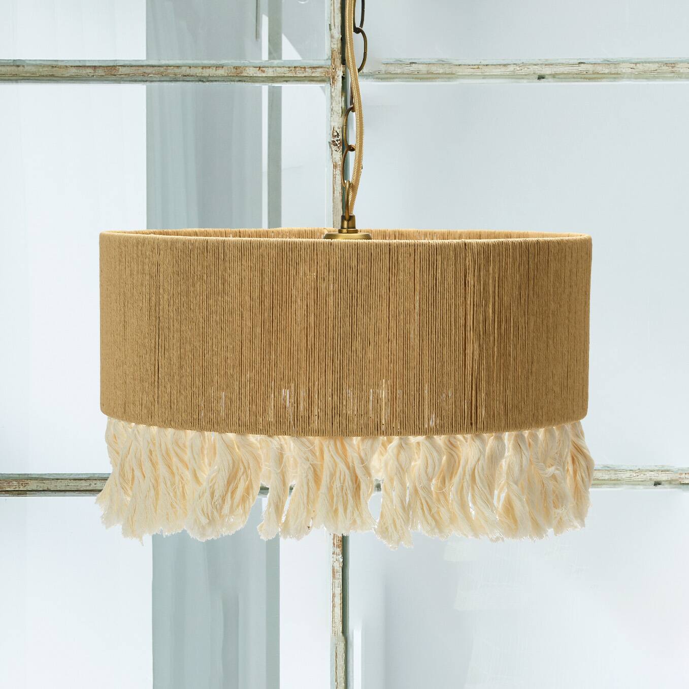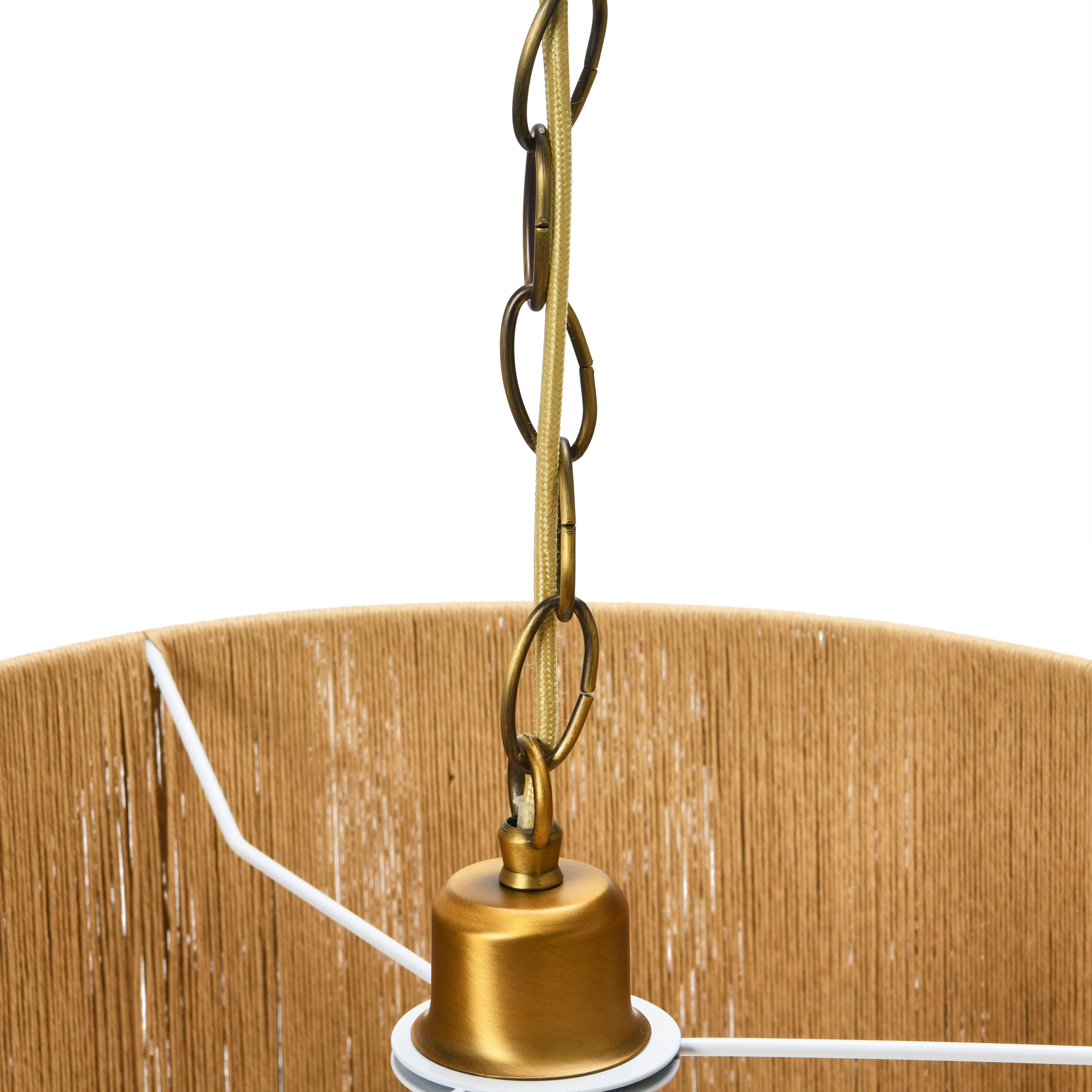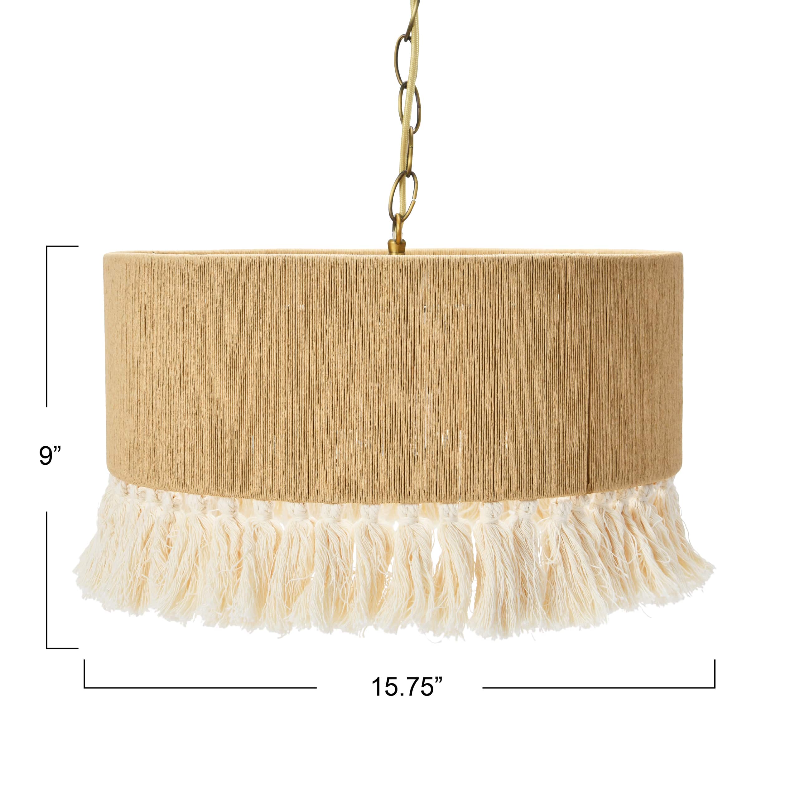 Hello Honey® 16" Brown Coastal Pendant Lamp with Natural Paper Rope Shade, Fringe Detail and Iron Base