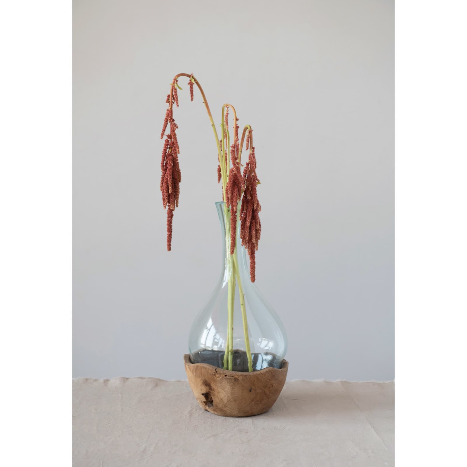 Hello Honey® 16" Recycled Glass Vase with Teakwood Base
