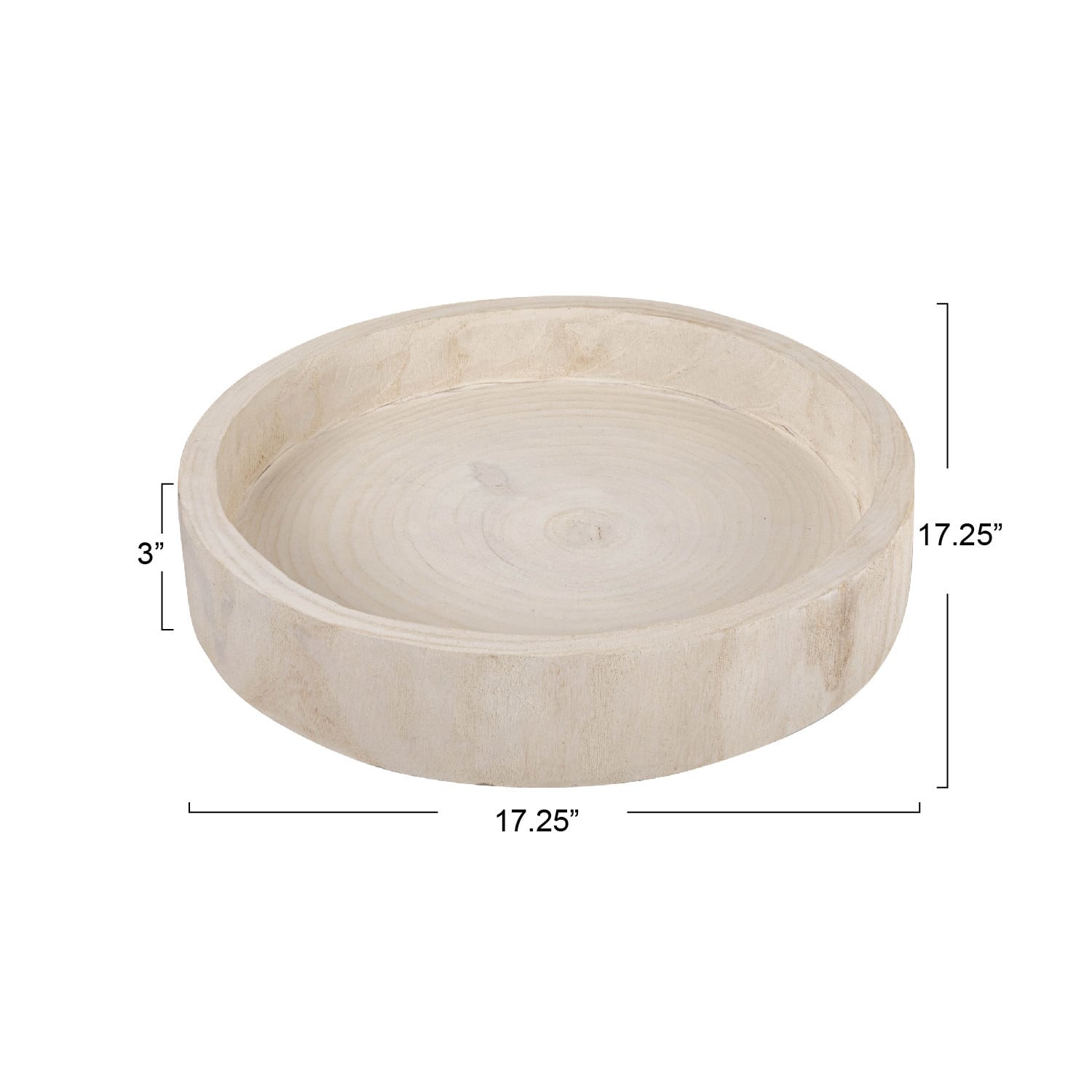 Hello Honey® 17" Whitewashed Round Hand-Carved Decorative Paulownia Wood Tray