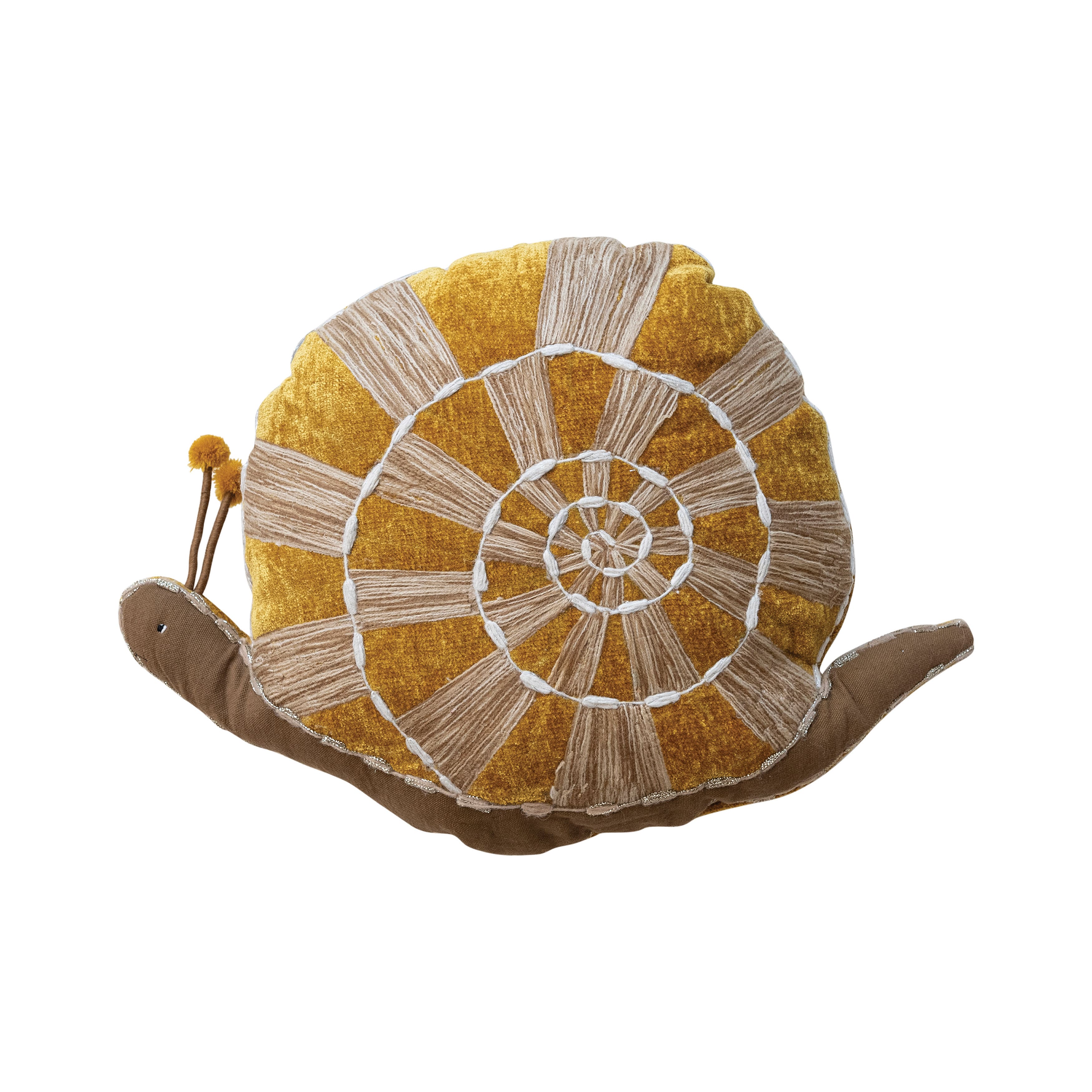 Hello Honey® 18" x 14" Mustard & Brown Hand-Woven Fabric Snail-Shaped Throw Pillow