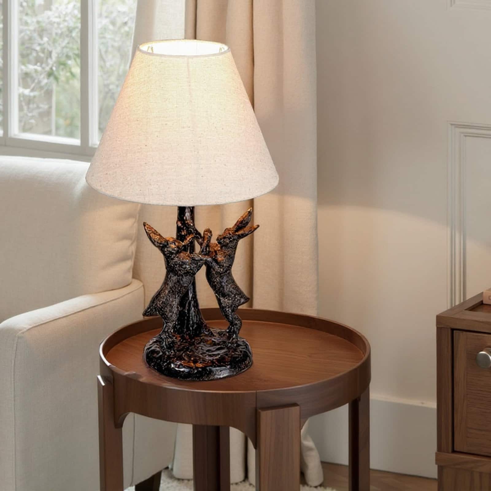 Hello Honey® 18.5" Brown & Natural Bunny Rabbit Table Lamp with Linen Empire Shade