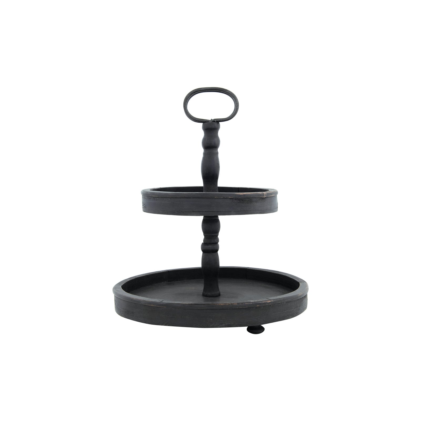 Hello Honey® 18.5" Distressed Black Wood 2-Tier Tray