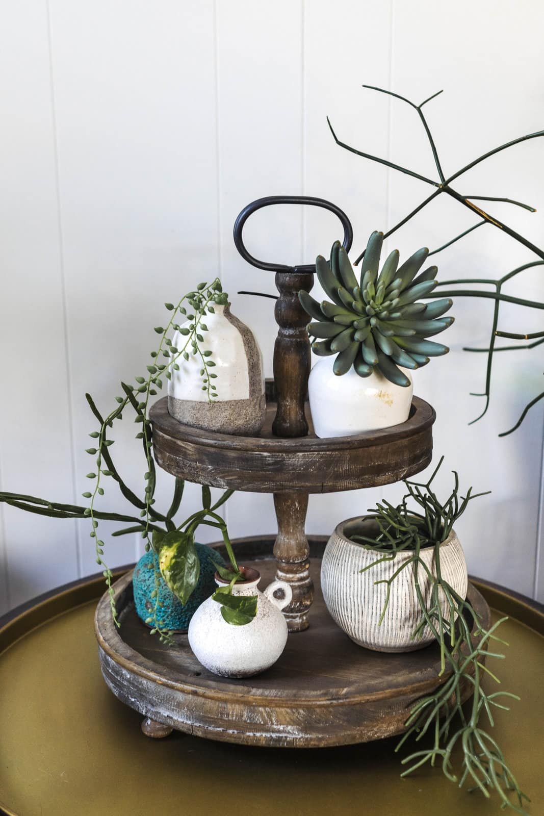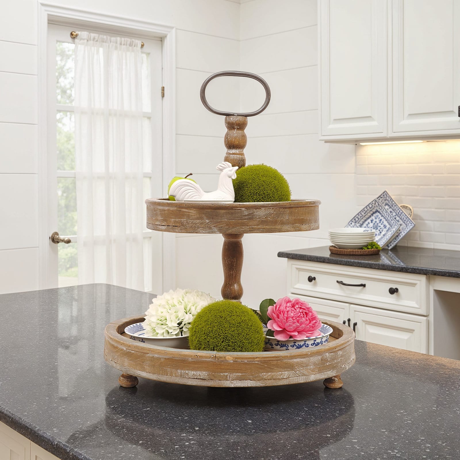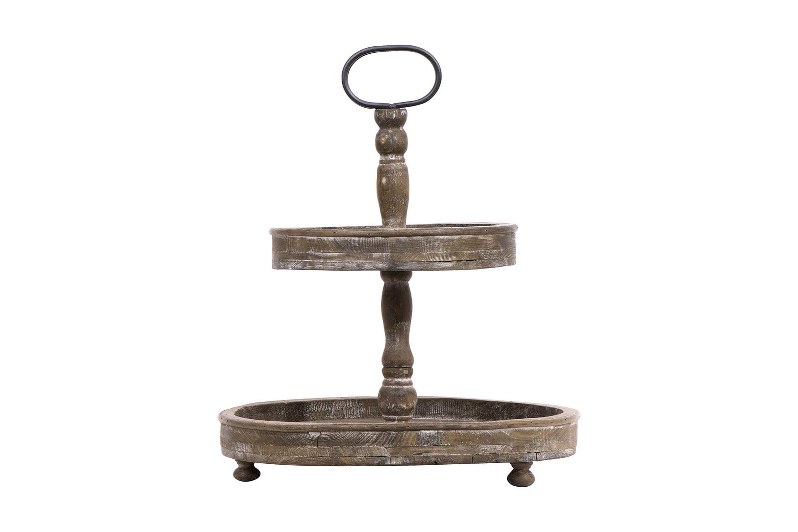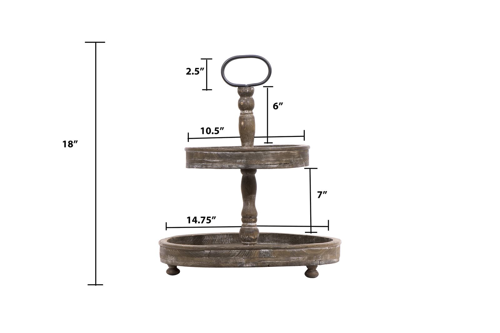 Hello Honey® 18.5" Distressed Brown Wooden 2-Tier Tray with Metal Handle