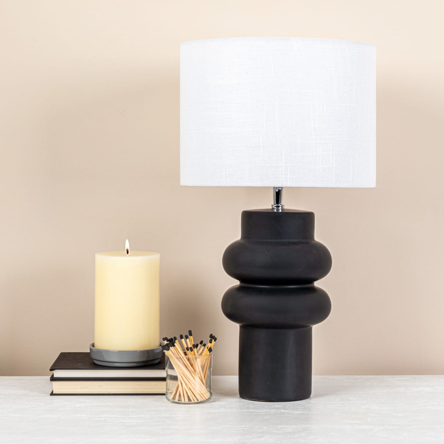 Hello Honey® 20" Black Stoneware Table Lamp with Linen Shade