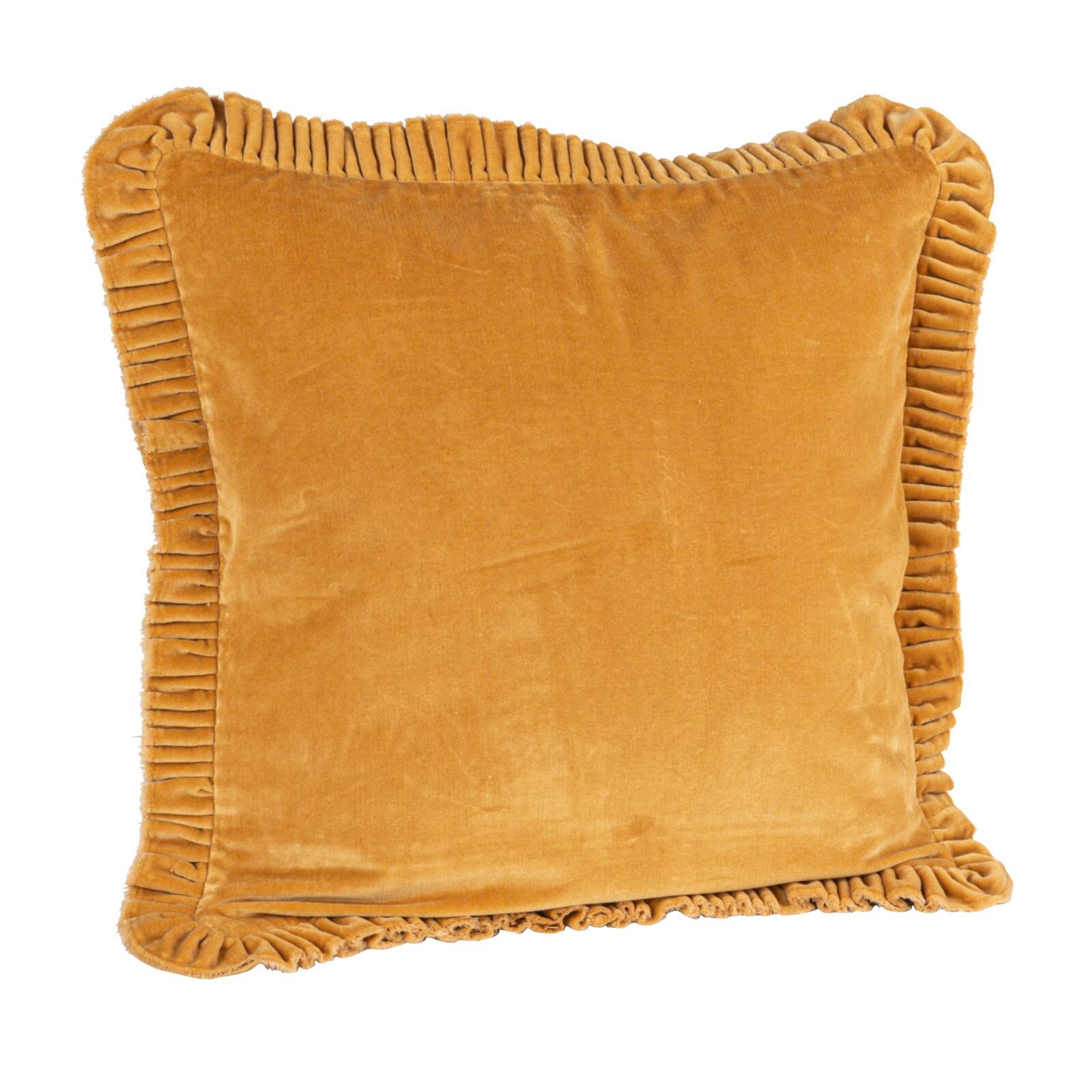 Hello Honey® 20" Mustard Yellow Velvet Ruffled Square Accent Pillow