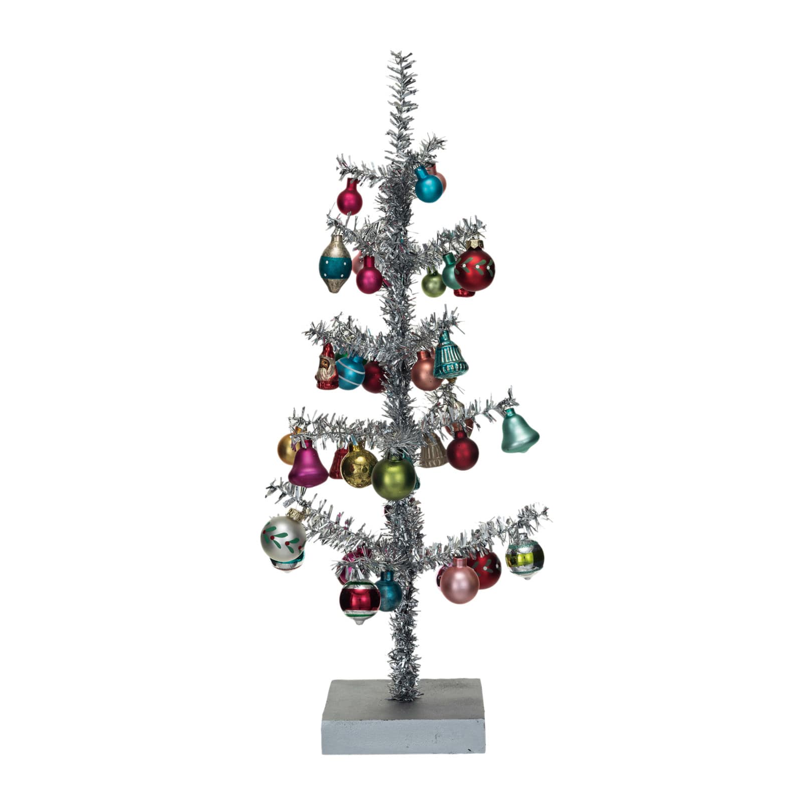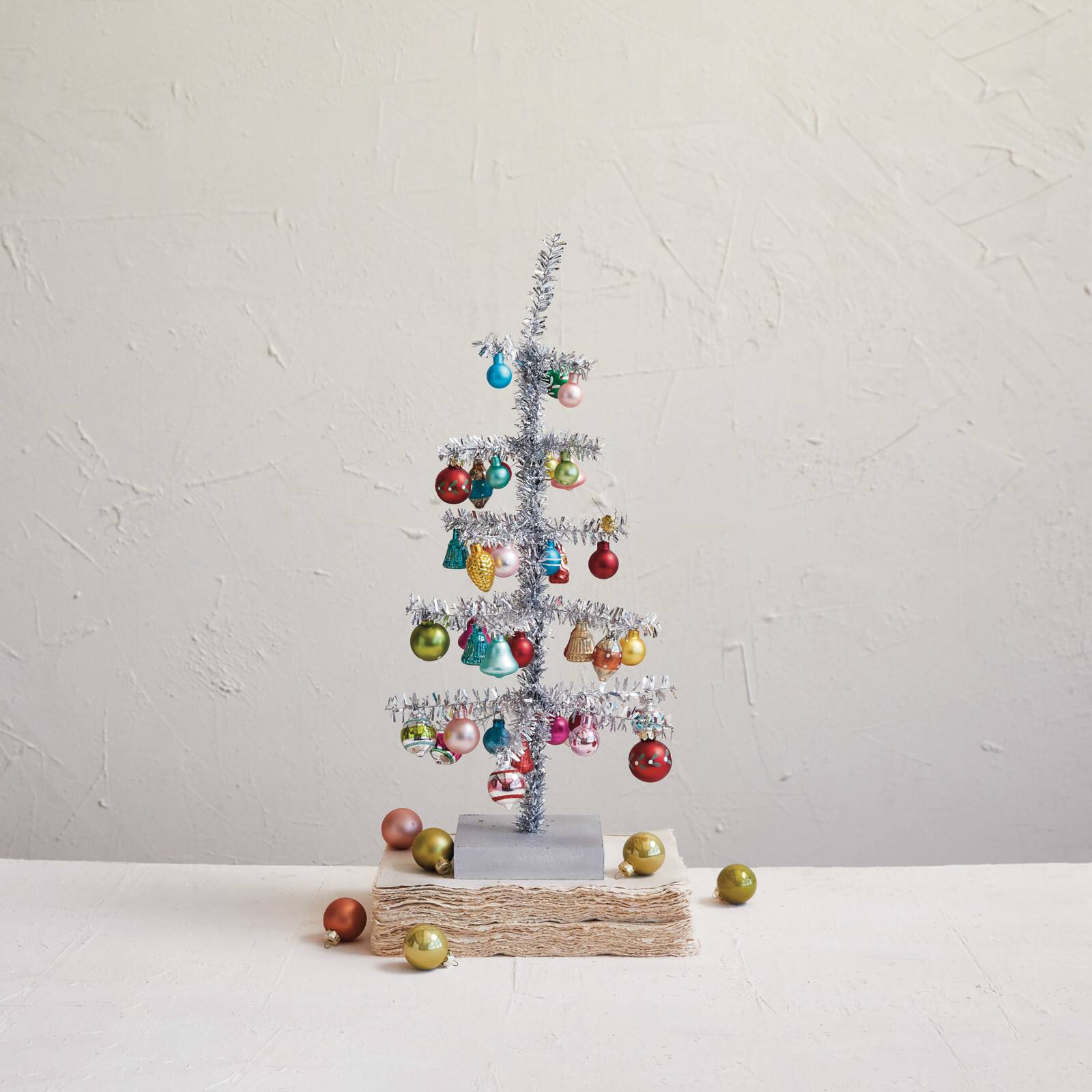 Hello Honey® 20" Silver Tinsel Tree with Glass Ornaments & Wood Base