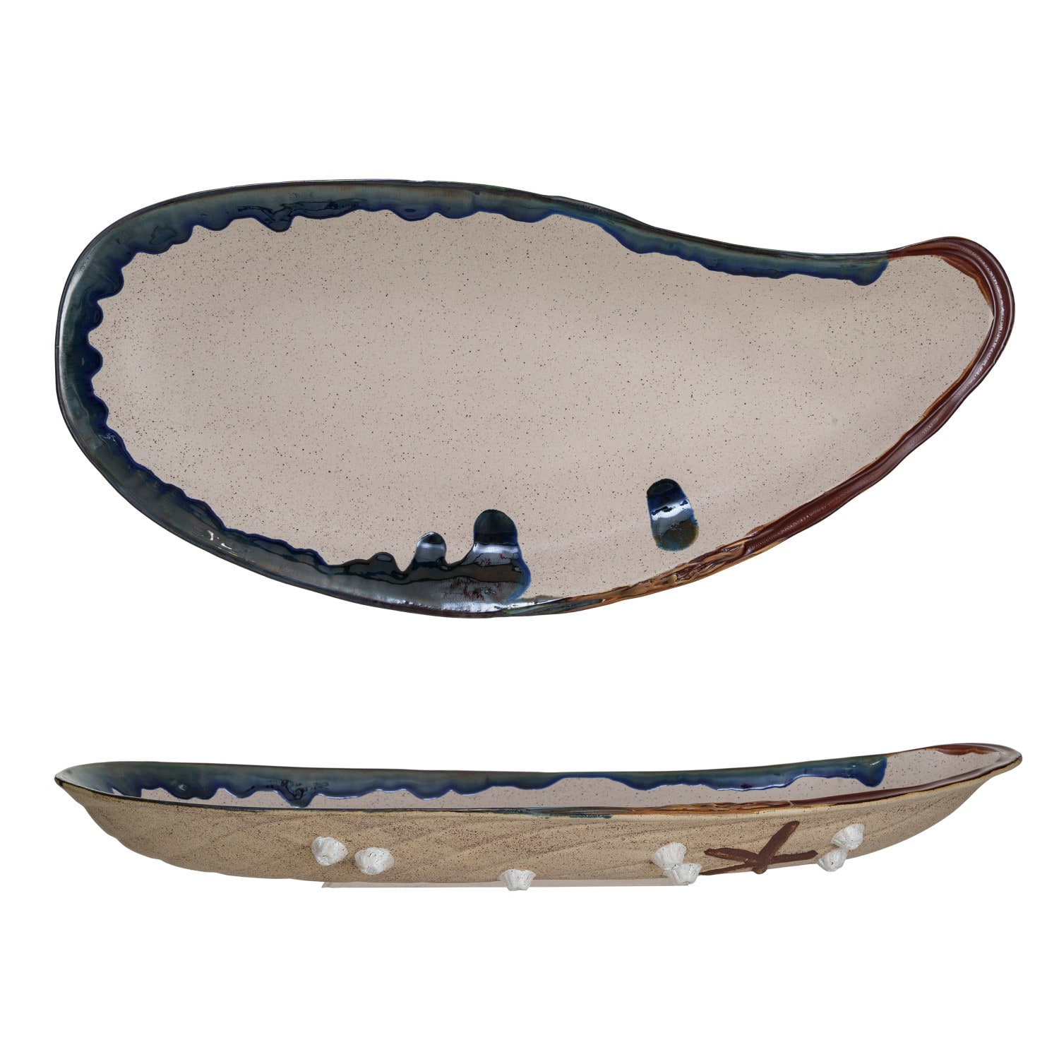 Hello Honey® 21" Cream Stoneware Shell Plate with Reactive Glaze