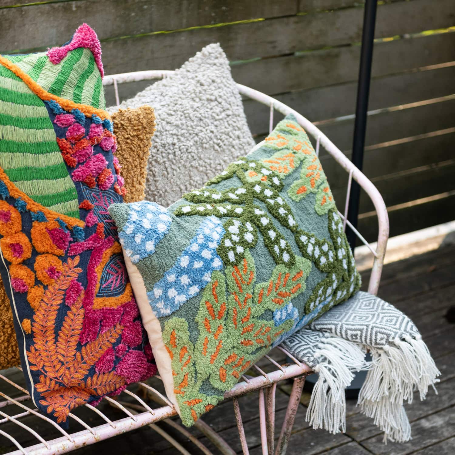 Hello Honey® 27" x 12" Botanical Embroidered & Tufted Fabric Lumbar Pillow