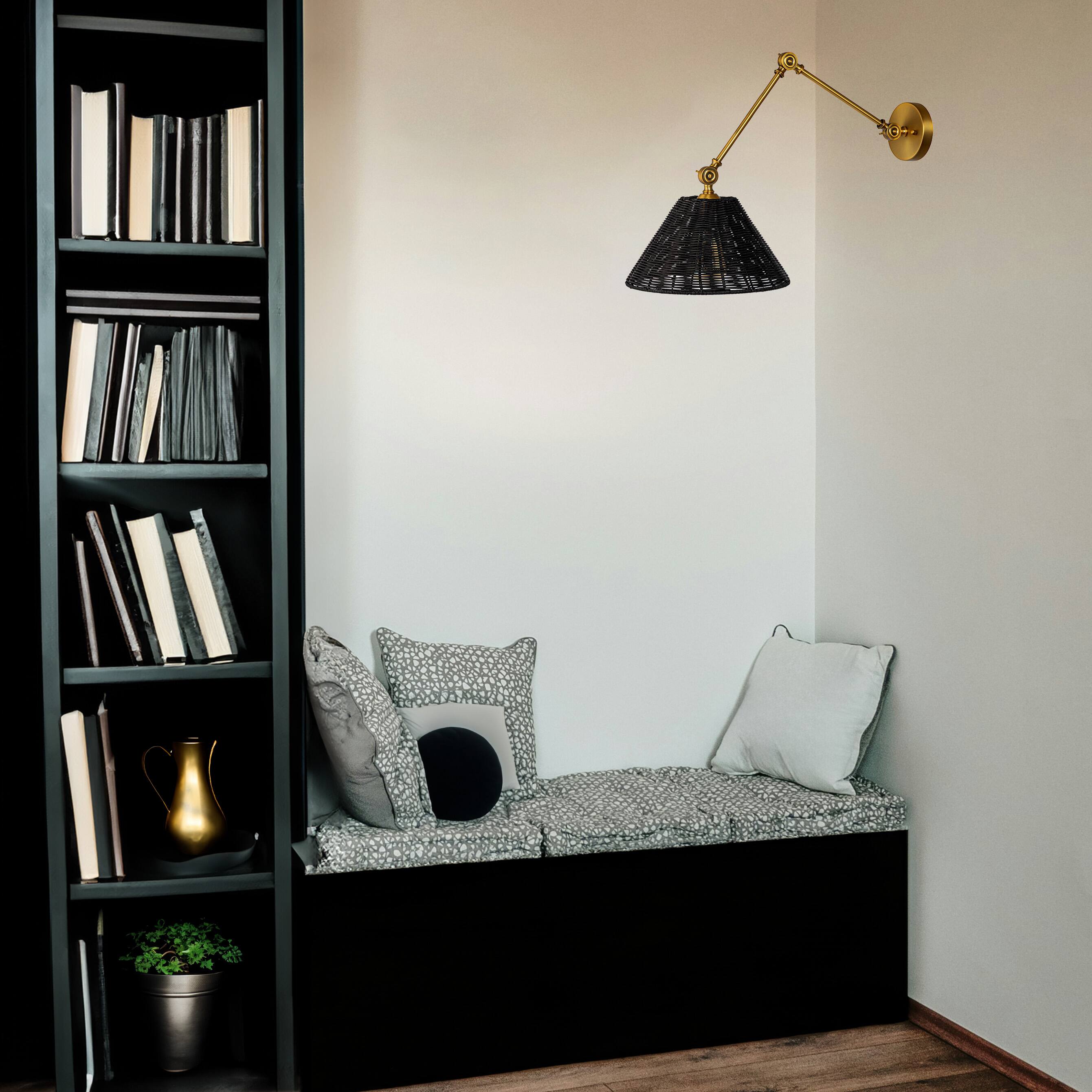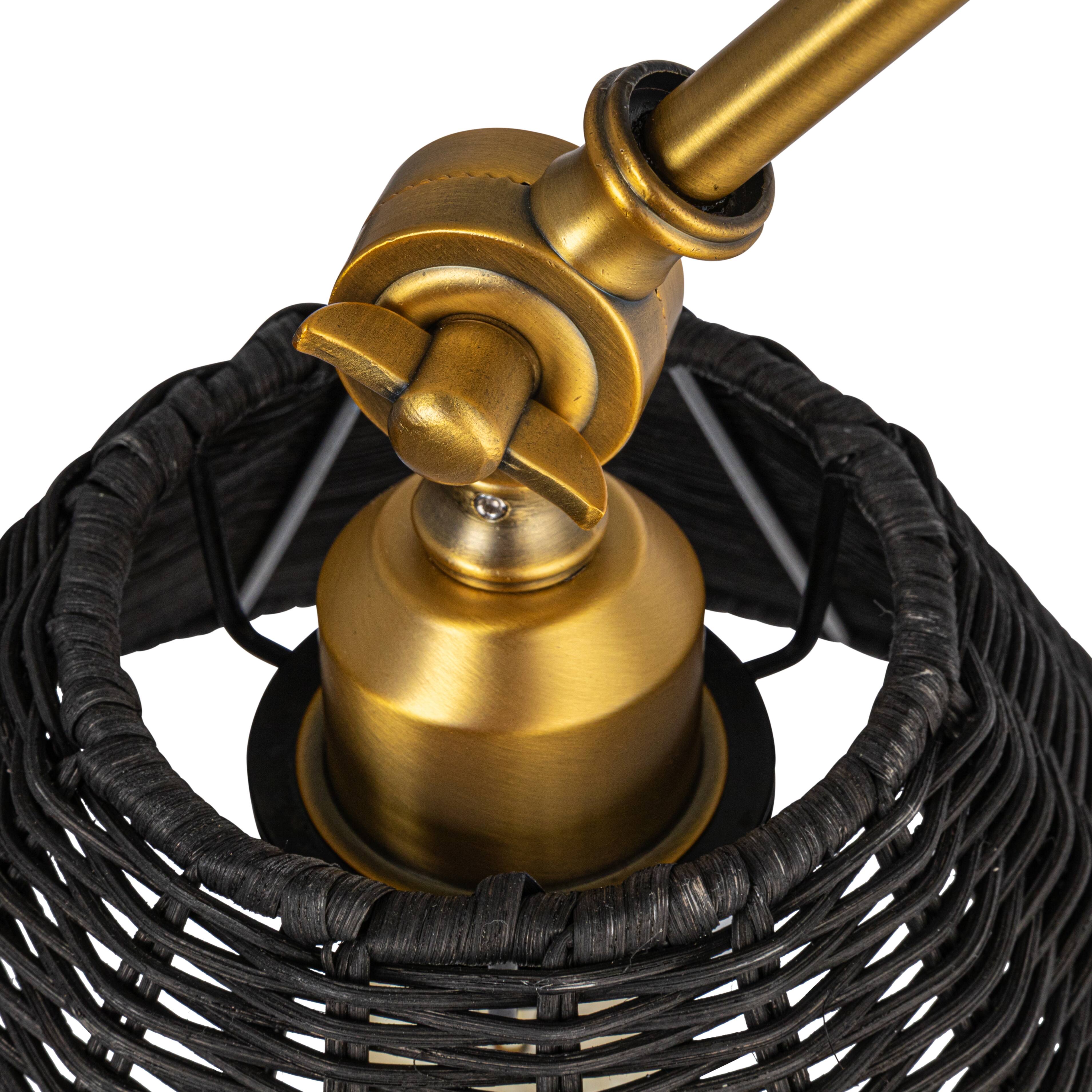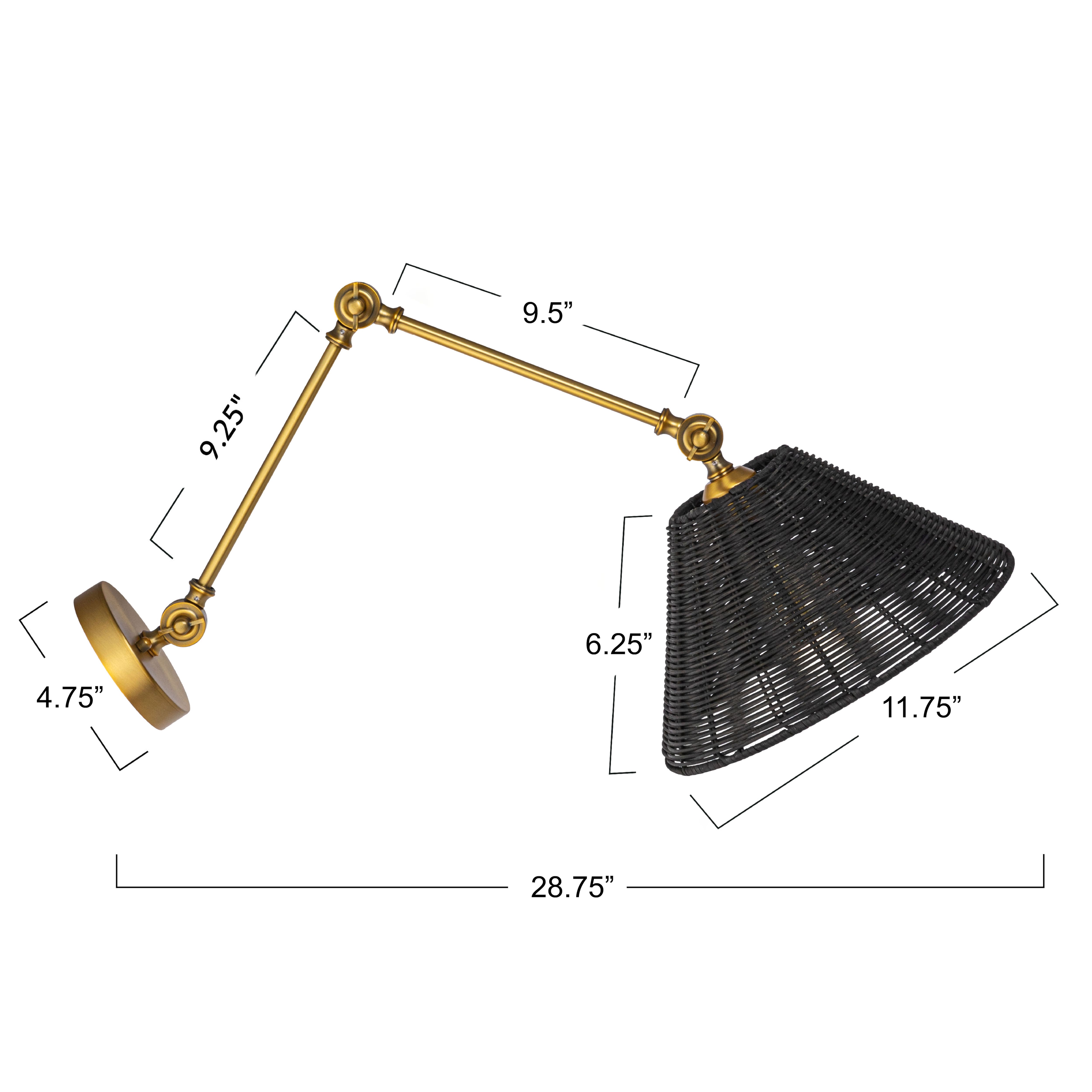 Hello Honey® 28.9" Adjustable Antique Brass Finish Wall Sconce with Black Rattan Shade