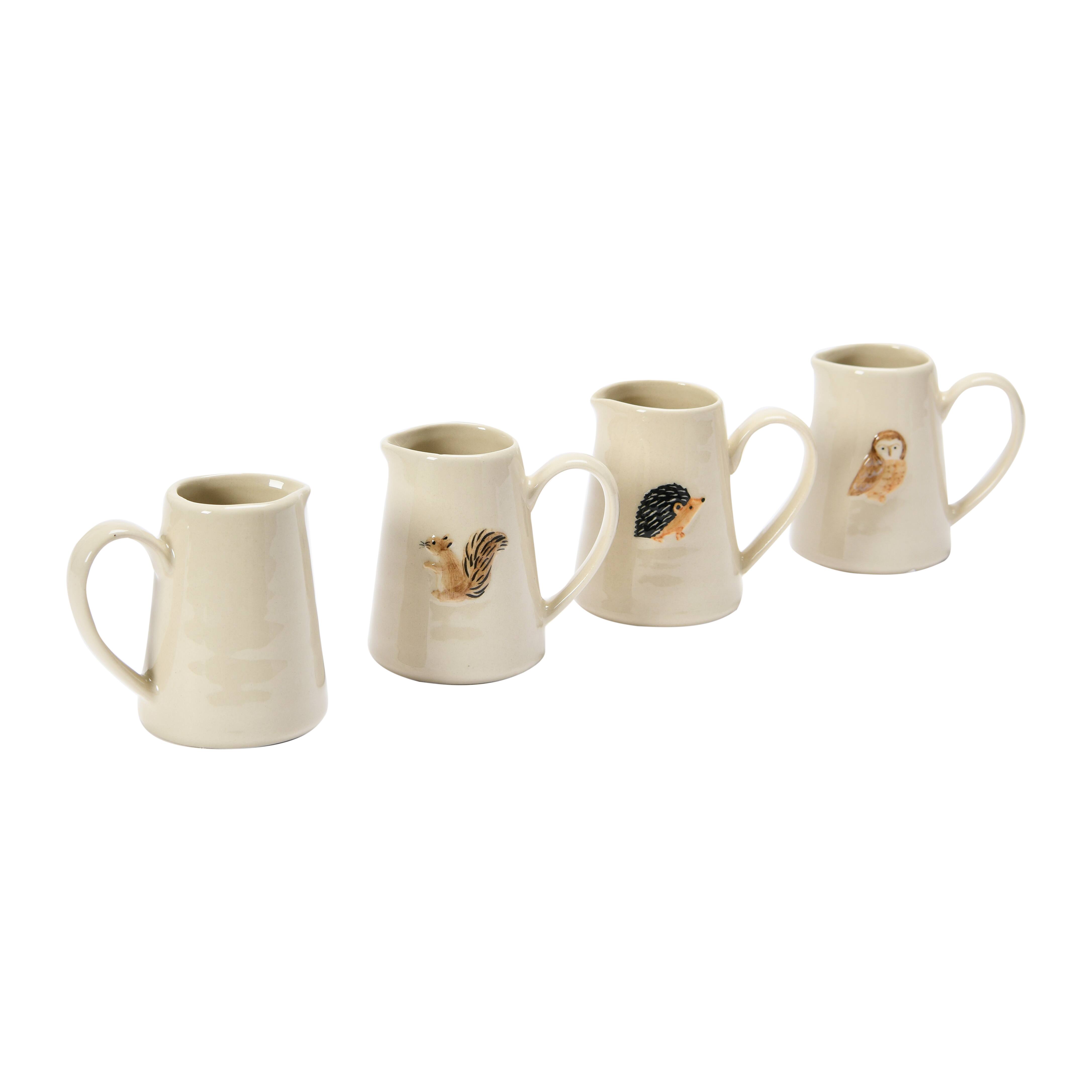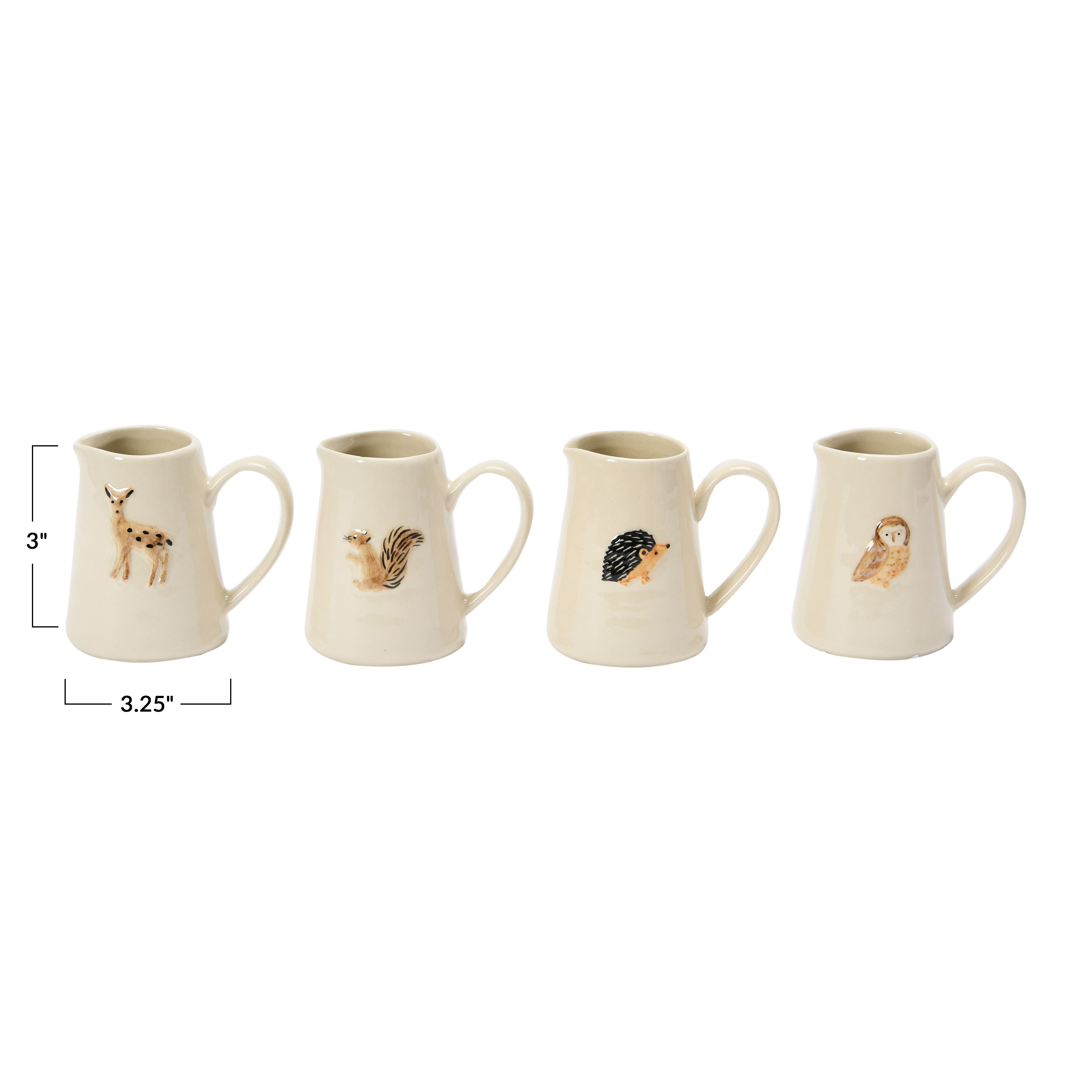 Hello Honey® 3" Hand-Painted & Embossed Forest Animal Ceramic Pitcher Mugs, 4ct.