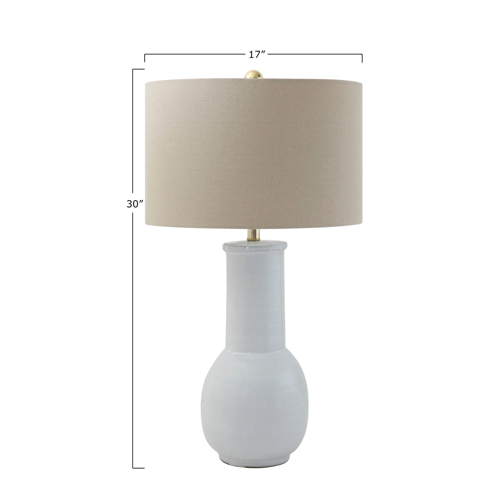 Hello Honey® 30" White Terracotta Table Lamp with Natural Linen Shade
