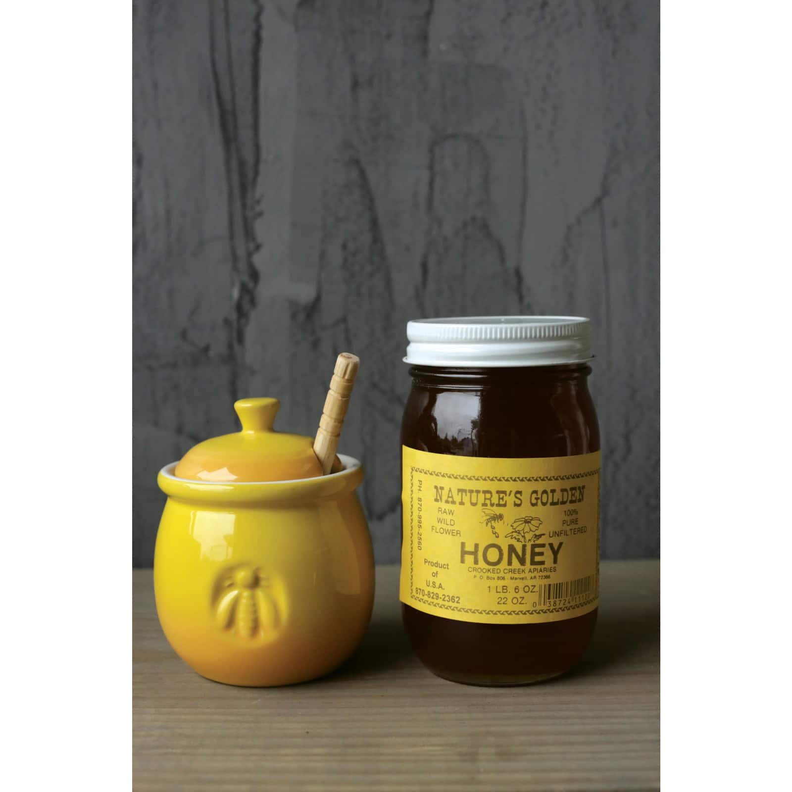 Hello Honey® 4.3" Yellow Ceramic Honey Pot & Wood Dipper