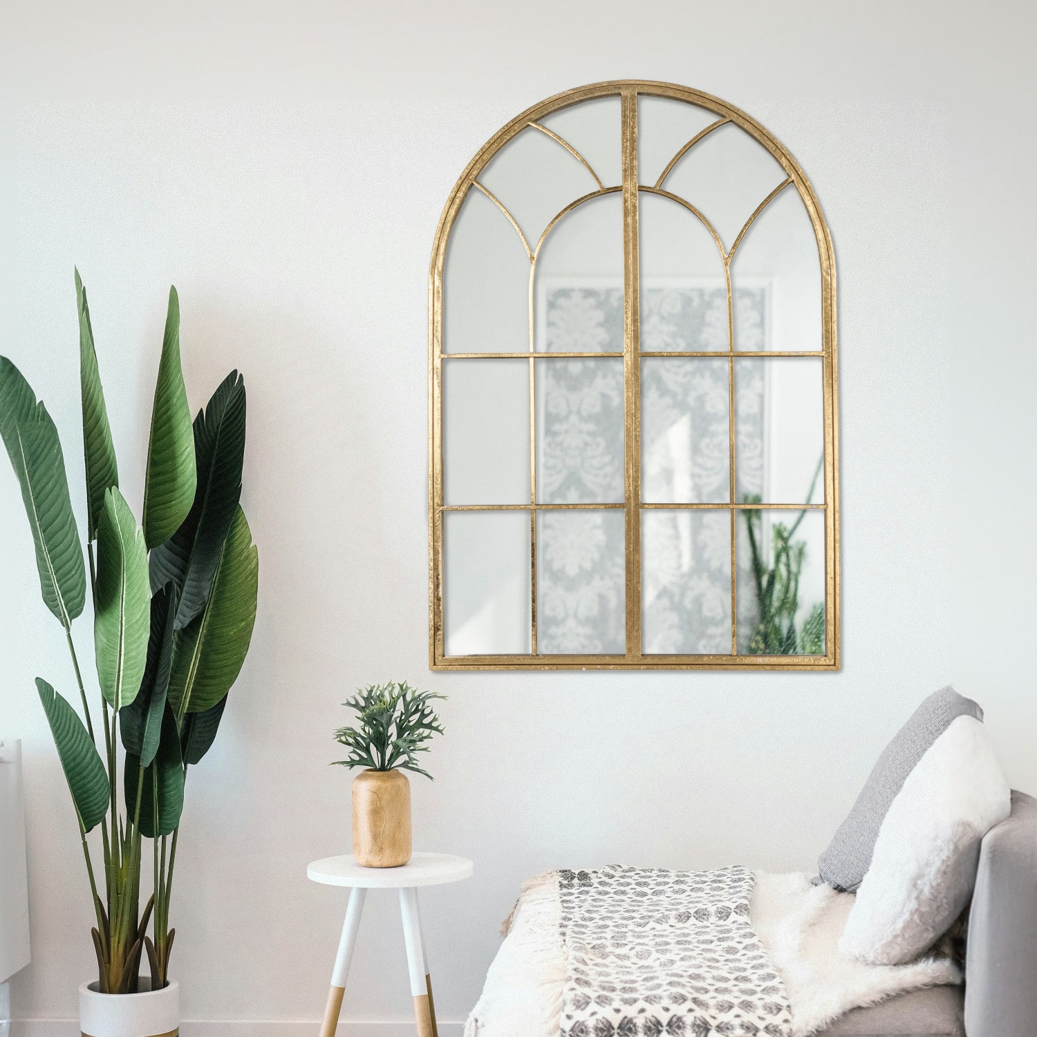 Hello Honey® 45" Gold Decorative Metal Arched Wall Mirror with Window Style Design