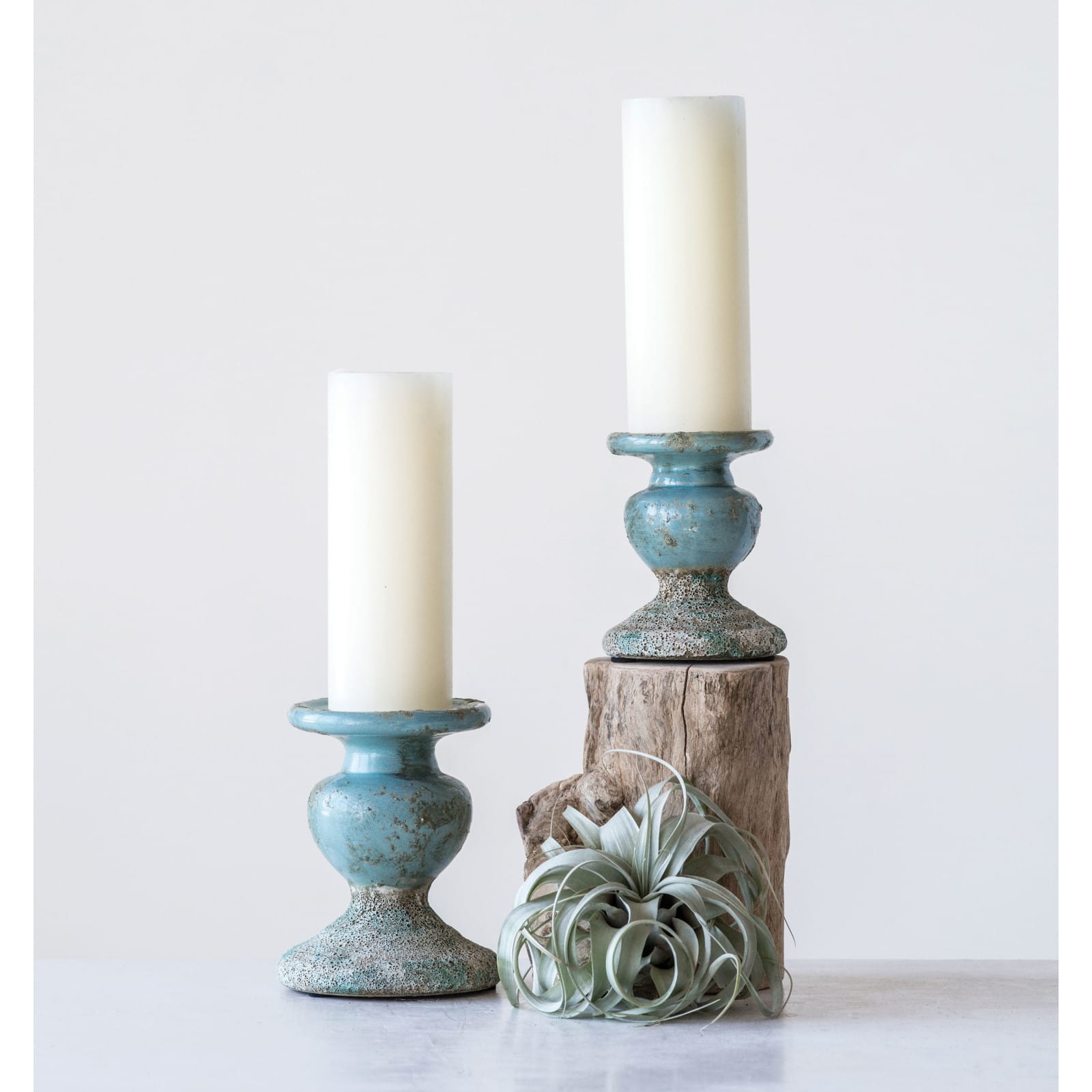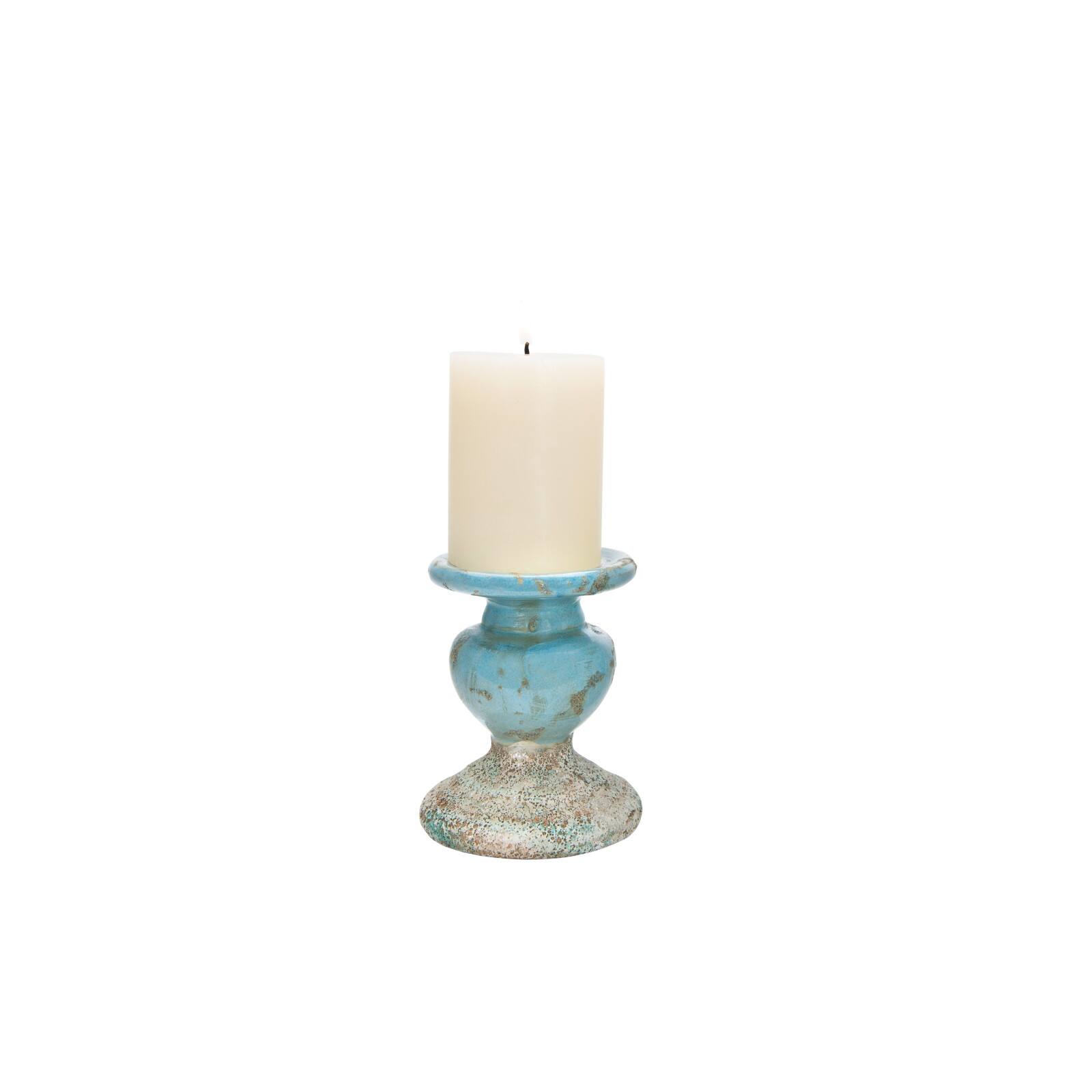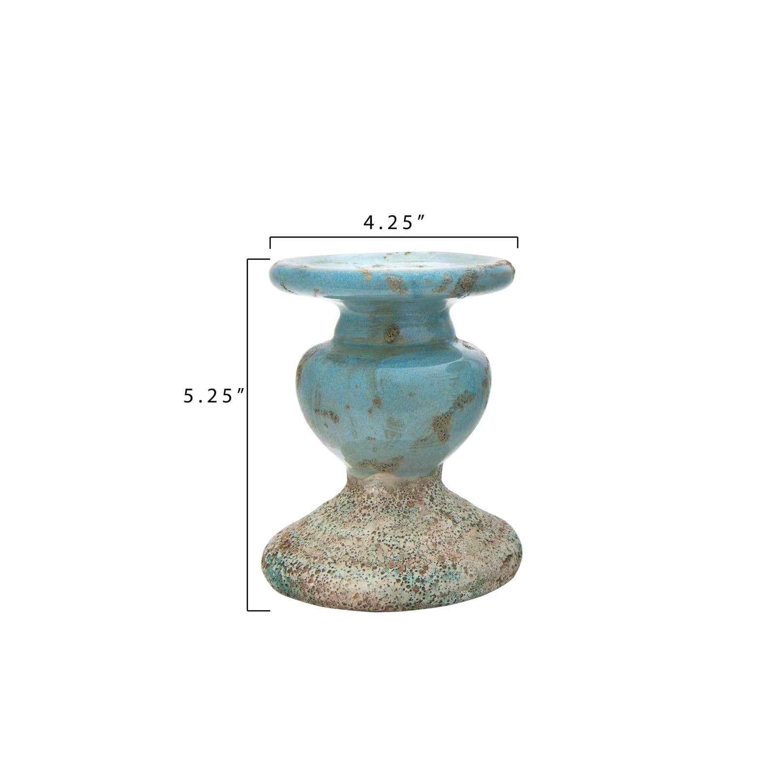 Hello Honey® 5" Distressed Blue Terracotta Pillar Candleholder