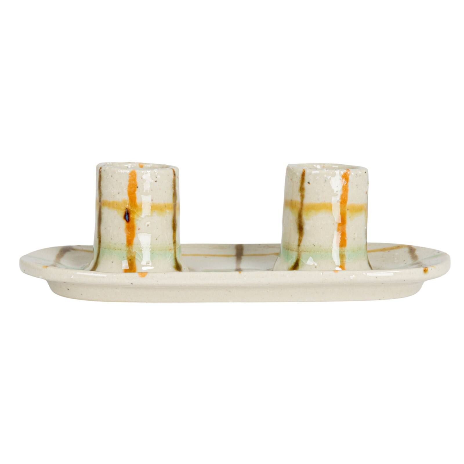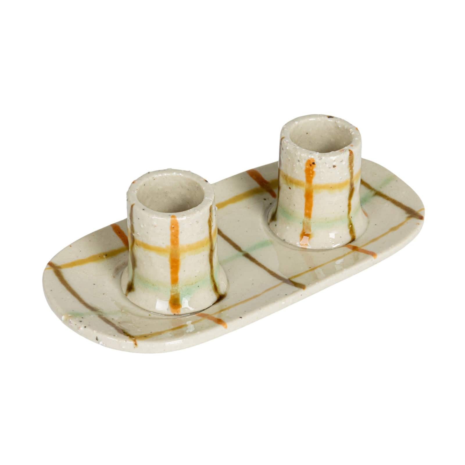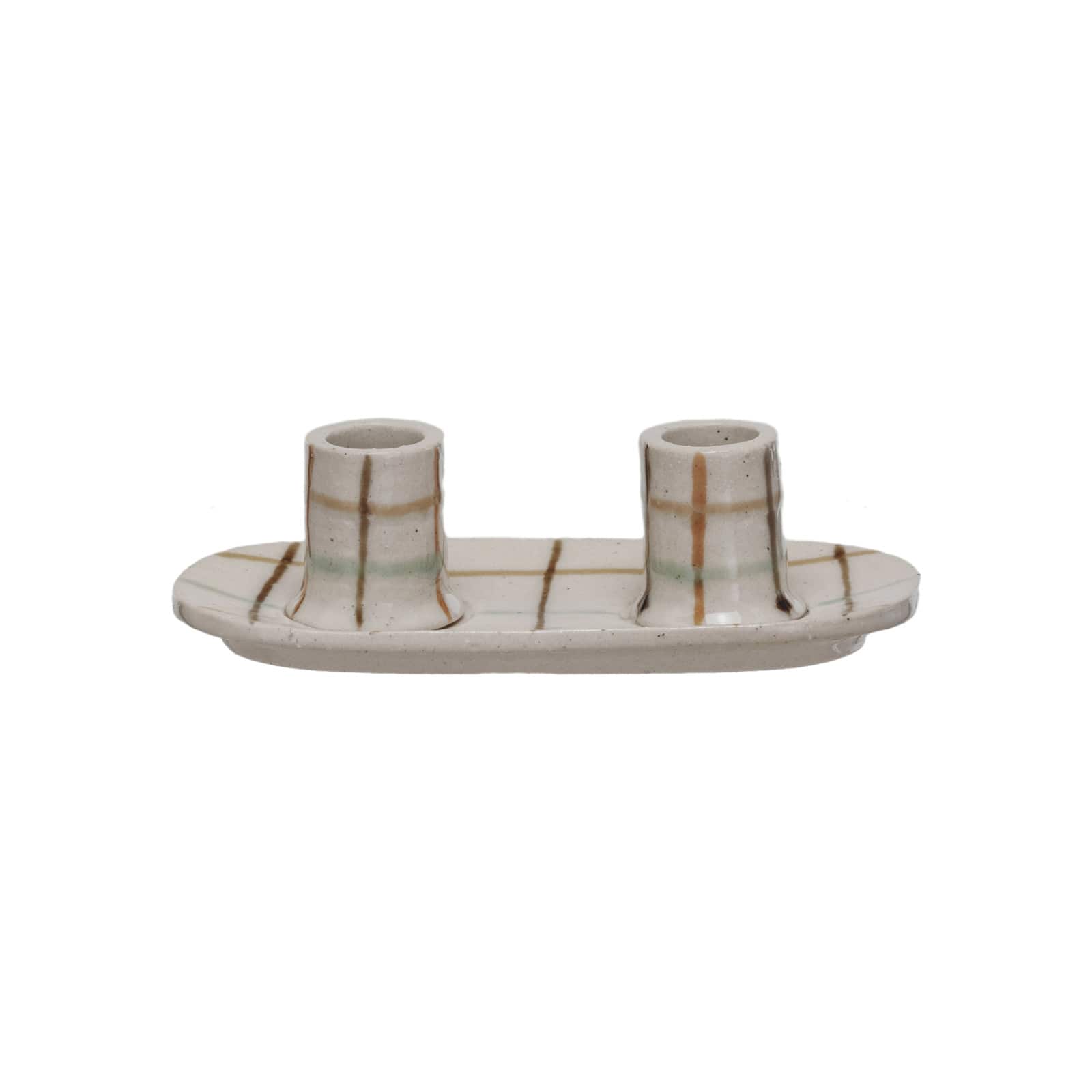 Hello Honey® 5.75" Multicolor Plaid Charm Stoneware Taper Candle Holder