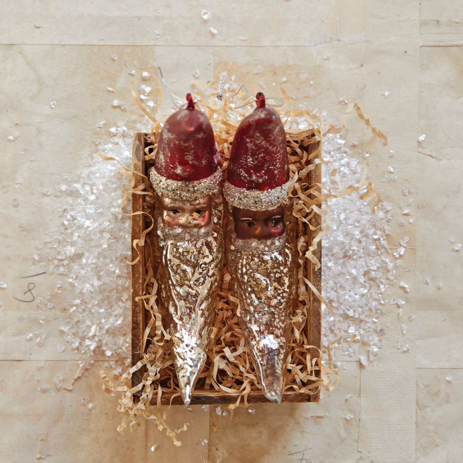 Hello Honey® 6" Red & Silver Mercury Glass Santa Moon Ornament