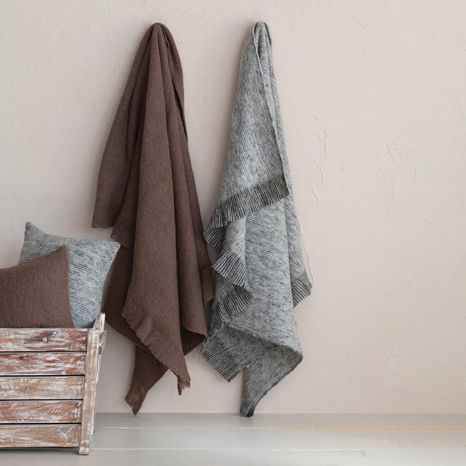 Hello Honey® 60" Brown Brushed New Zealand Wool Throw with Ruffled Edge
