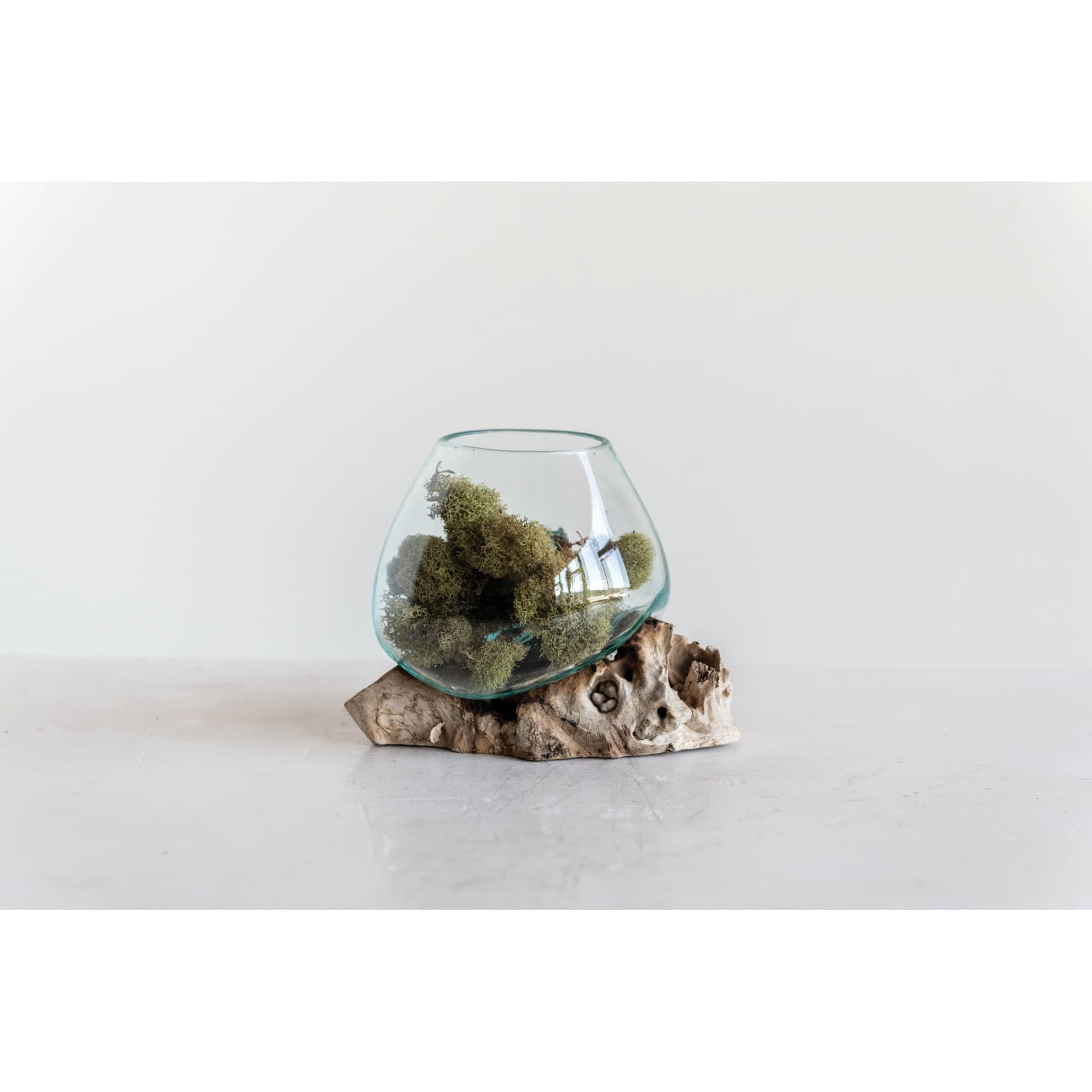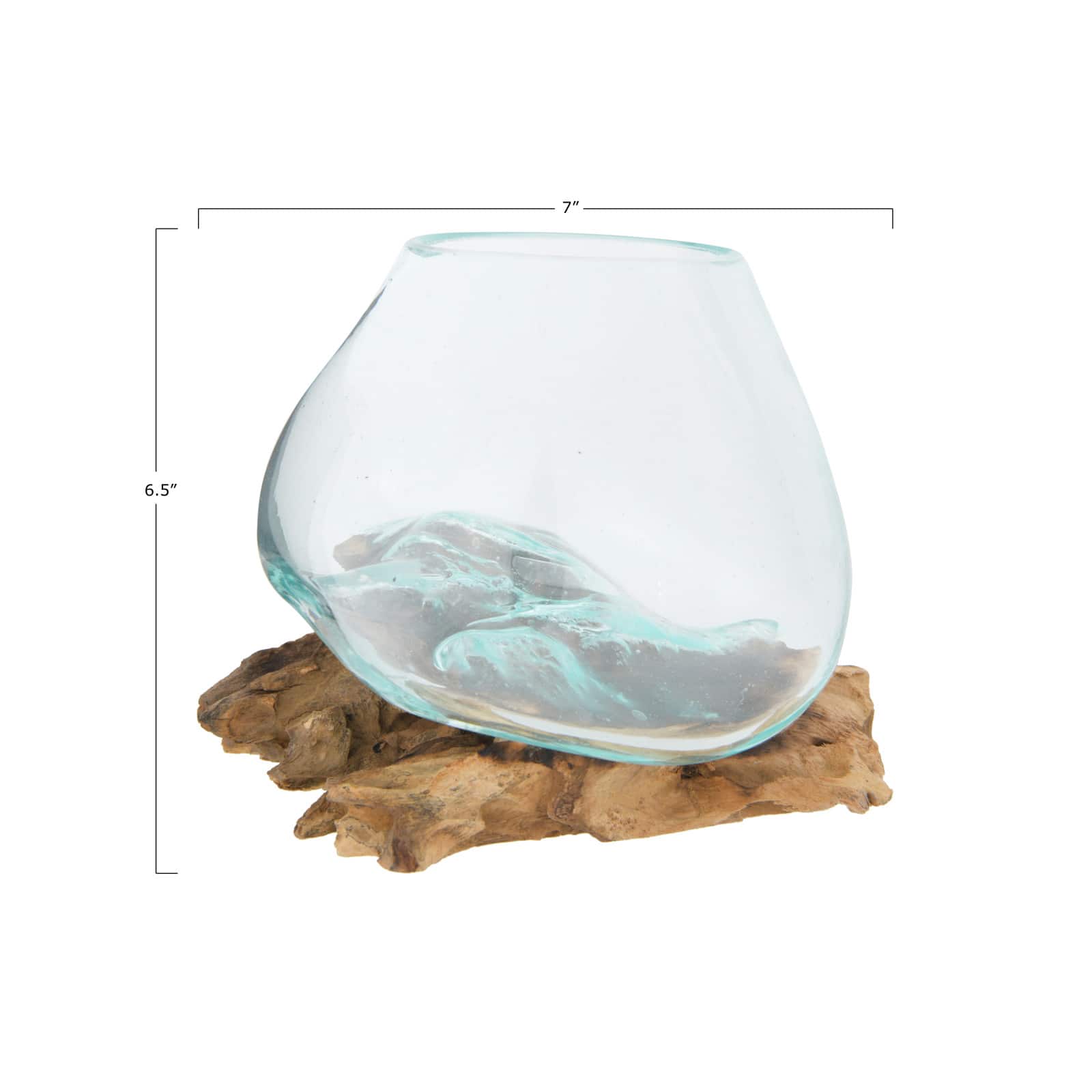 Hello Honey® 6.5" Glass Planter/Vase on Natural Wood Base