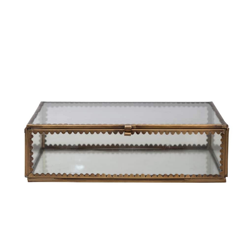 Hello Honey® 7" Antique Finish Brass and Glass Display Box with Scalloped Edges
