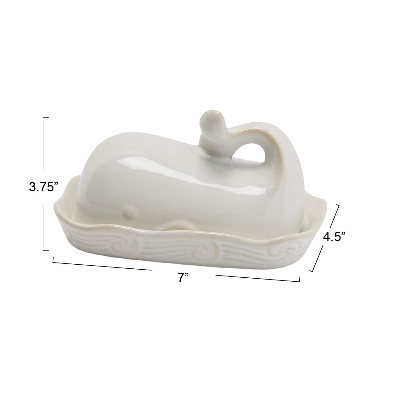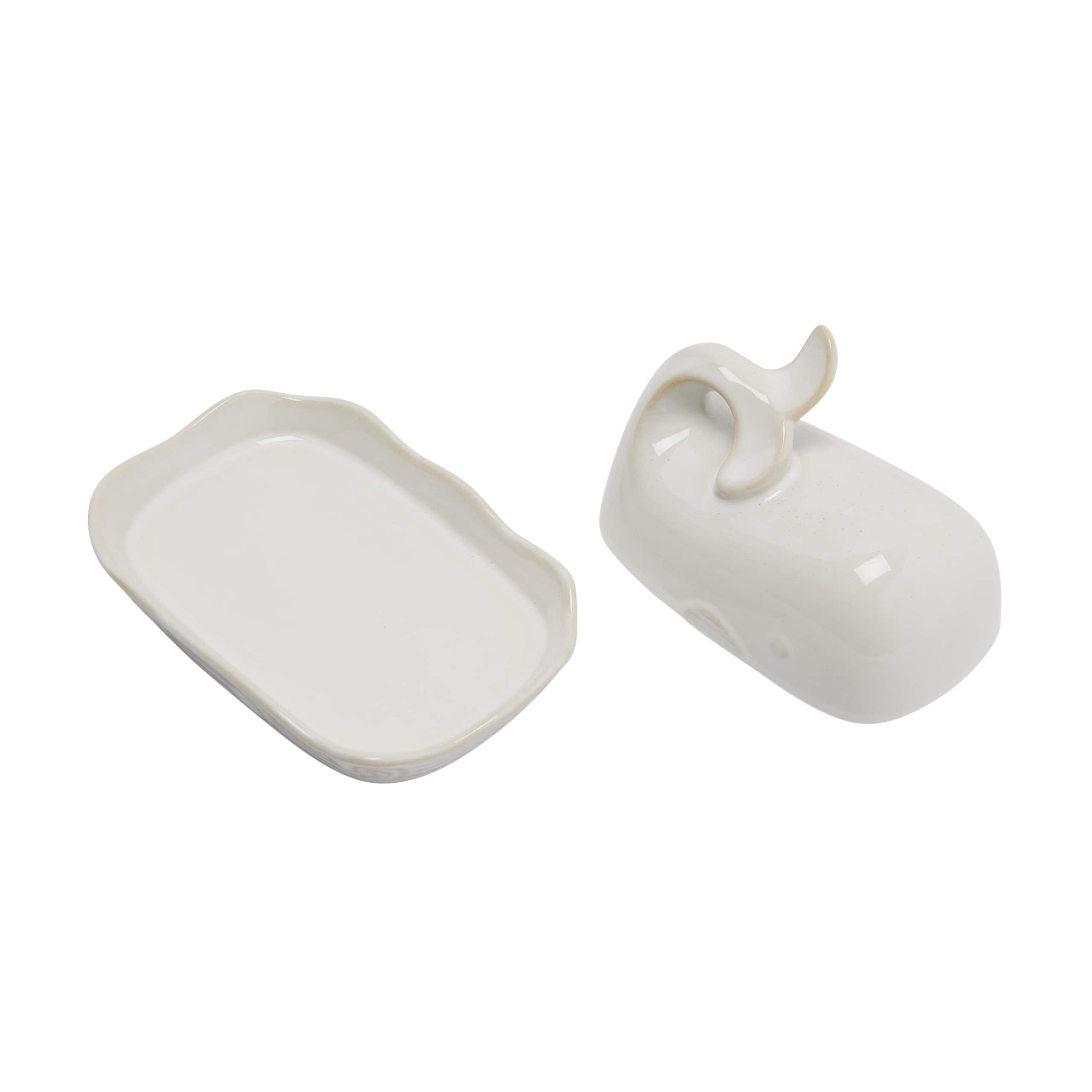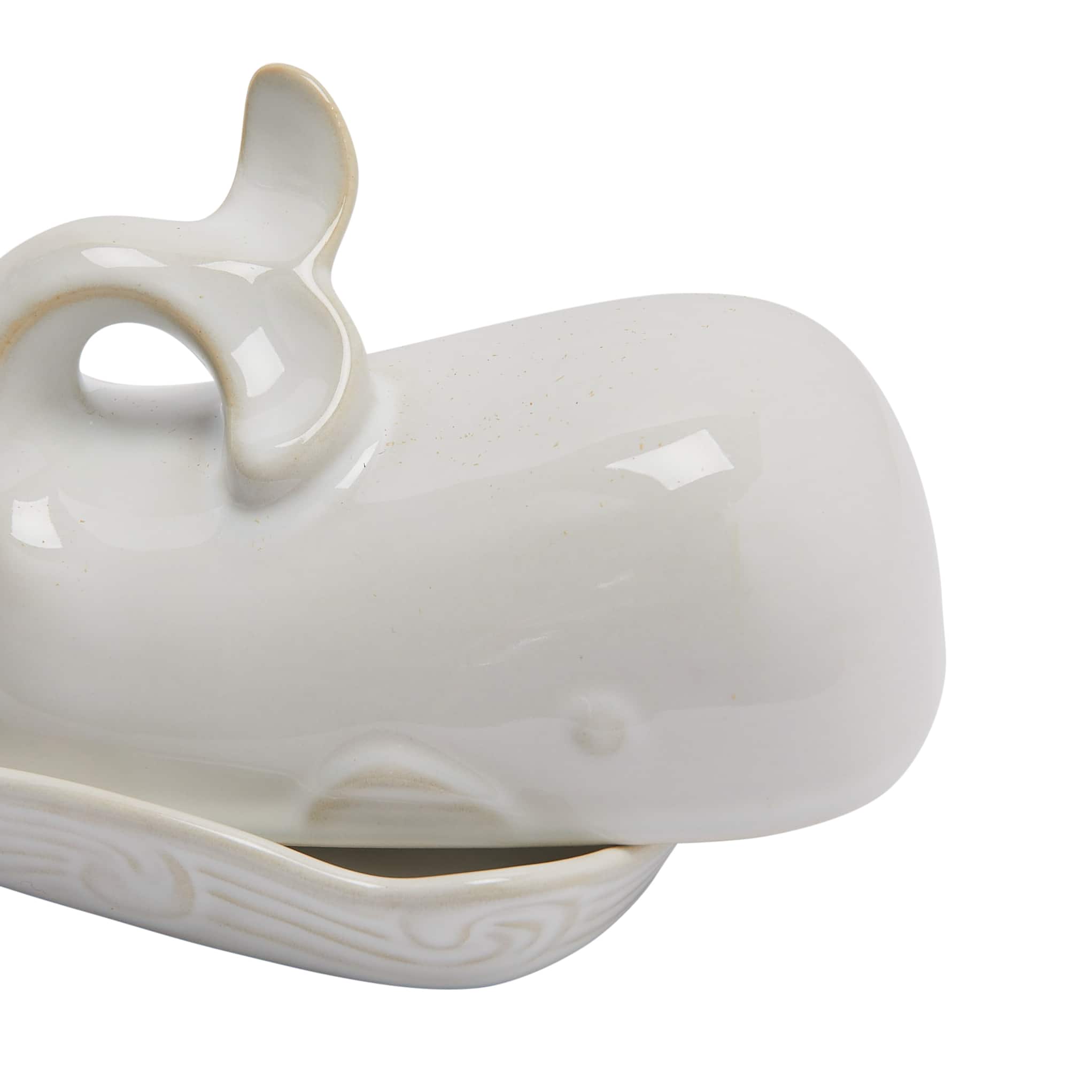Hello Honey® 7" White Coastal Stoneware Whale Shaped Butter Dish