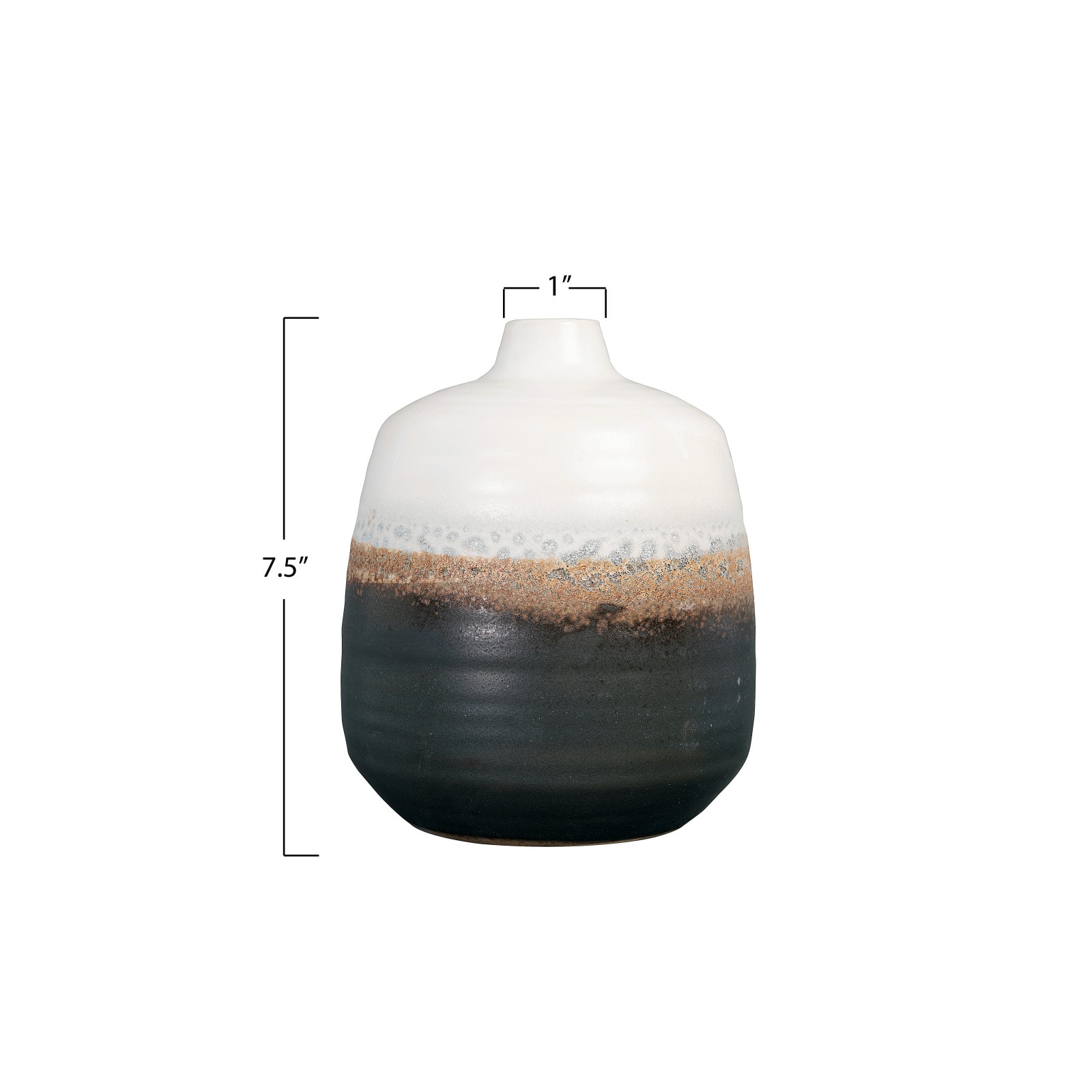 Hello Honey® 7.5" Black & White Ceramic Vase with Brown Reactive Glaze Accent