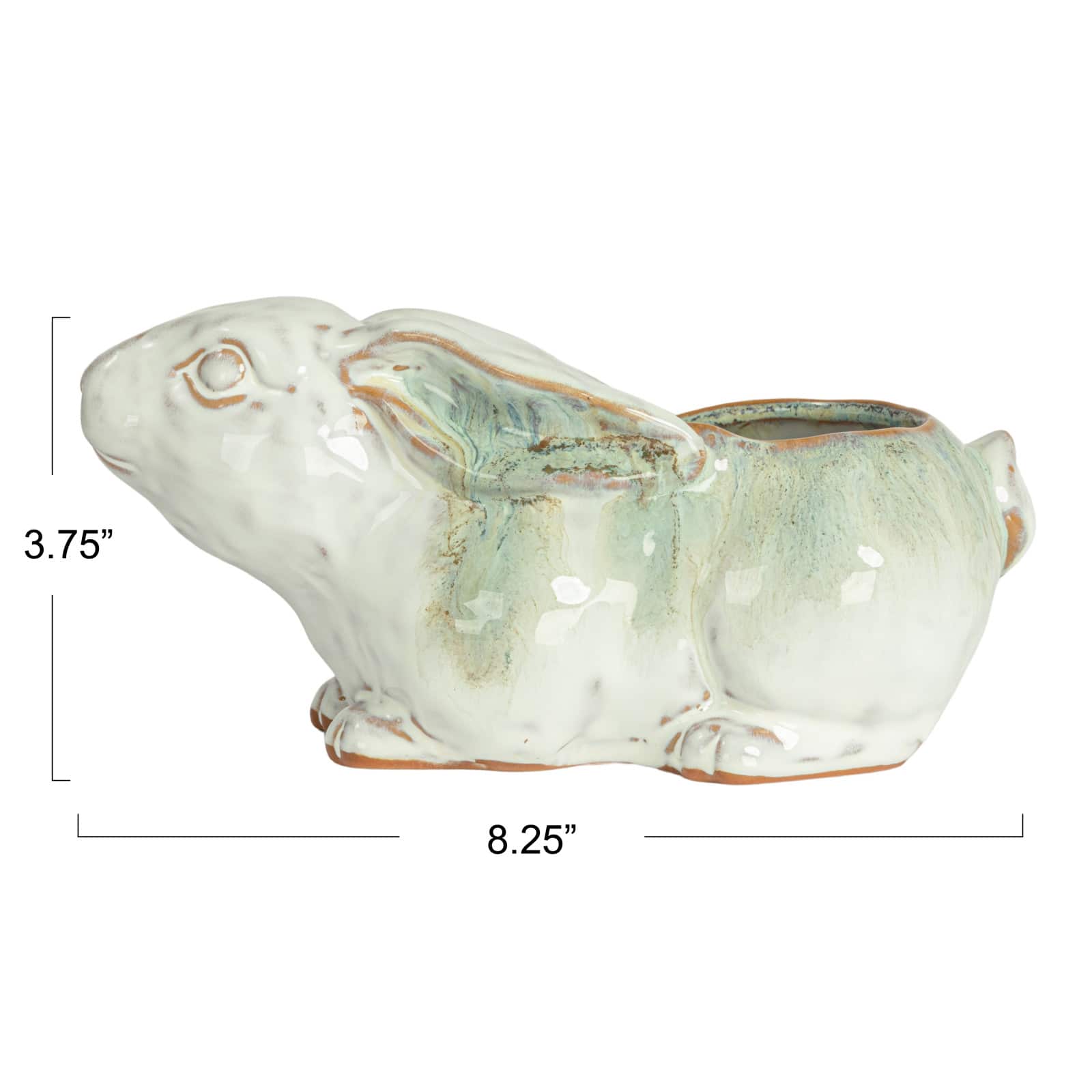 Hello Honey® 8.25" White & Marine Rabbit Stoneware Planter