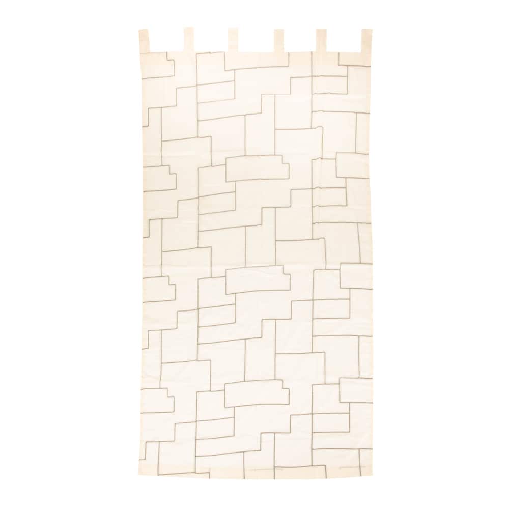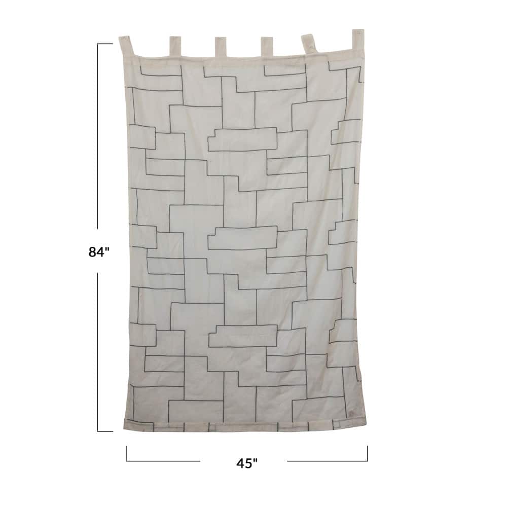Hello Honey® 84" Ivory and Black Modern Cotton Curtain Panel with Geometric Embroidery