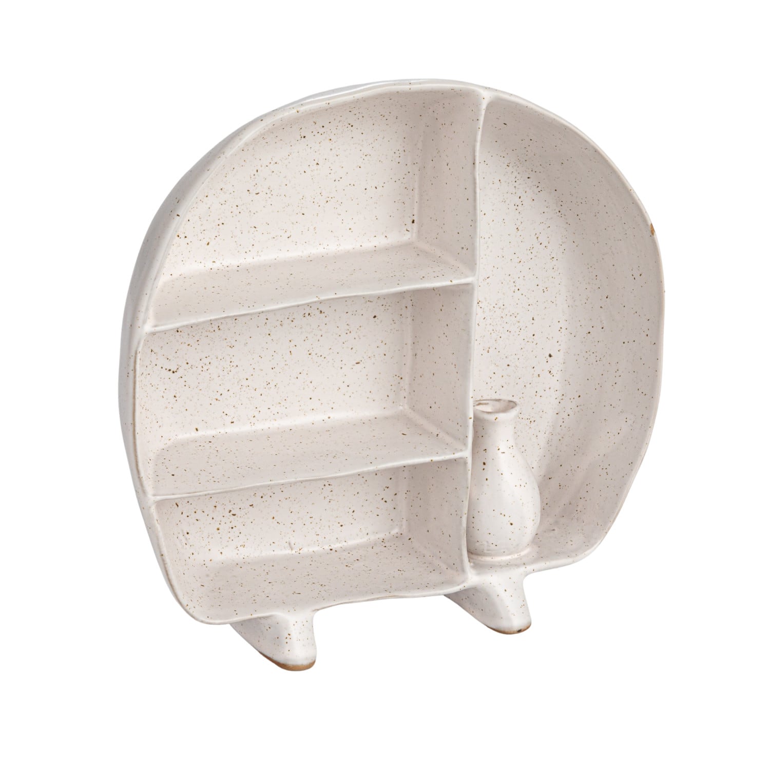 Hello Honey® 8.5" Cream Stoneware Footed Shelf with 4 Compartments & Attached Vase with Reactive Glaze