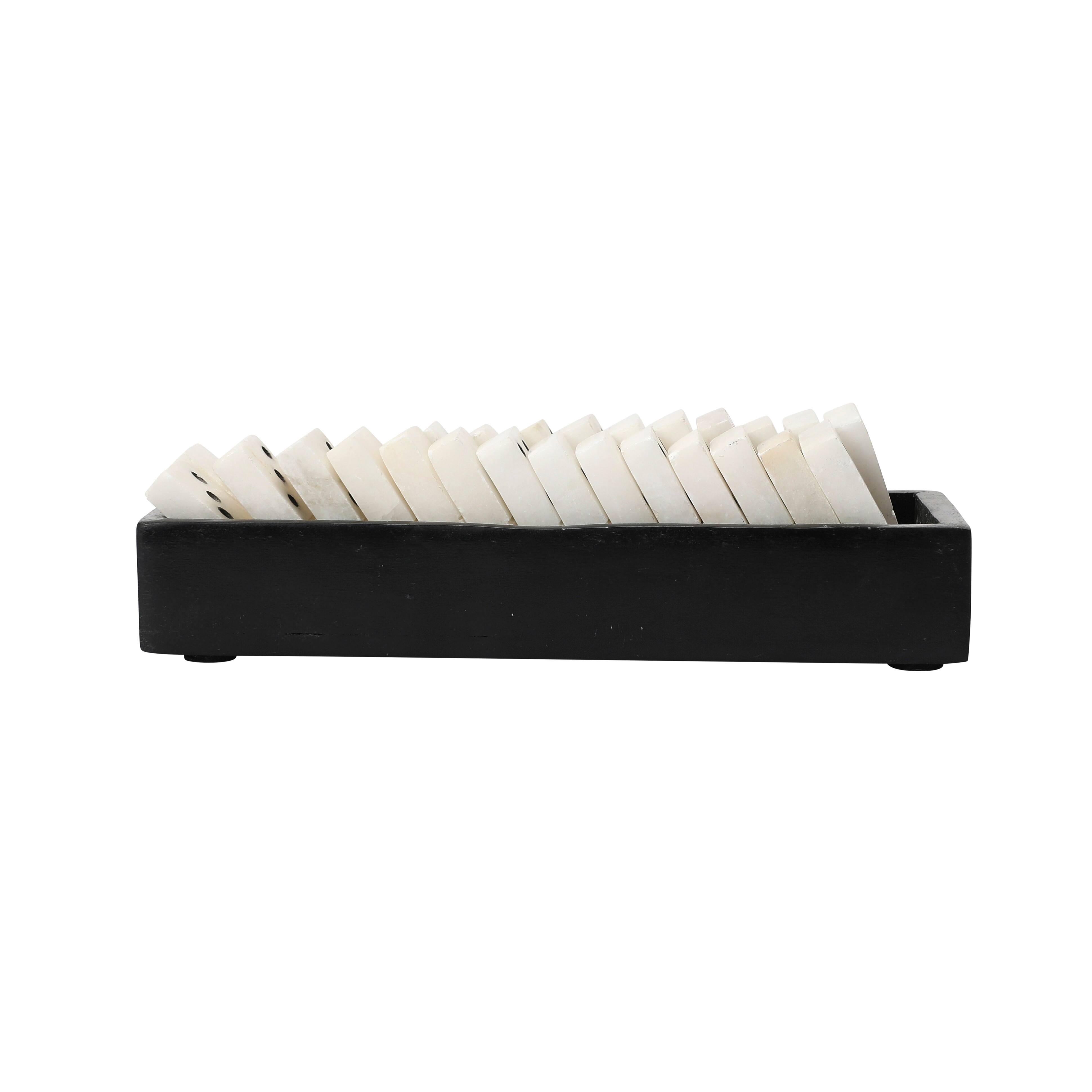 Hello Honey® 9" Black and White Handmade Alabaster Dominos in Soapstone Tray